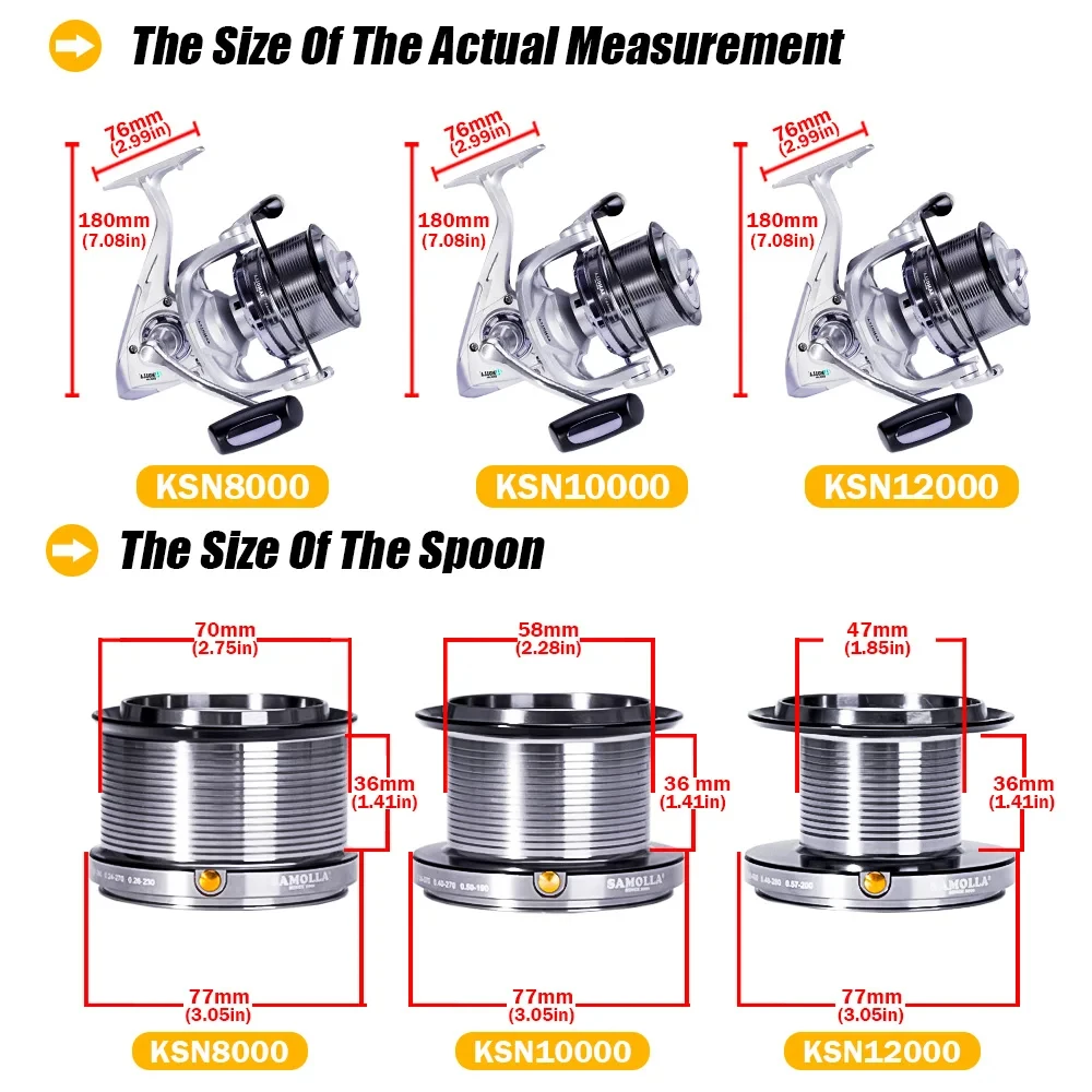 1,SPURE POWER: le encantará el increíble carrete giratorio KSN, el mejor en su clase, LBS hasta 55/25 KG de aleación de aluminio de disco triple suave y confiable, eje principal de acero inoxidable de gran tamaño, y engranajes de piñón de latón de manganeso de malla de precisión más fuertes para más músculo de pesca.
