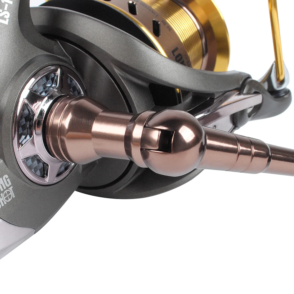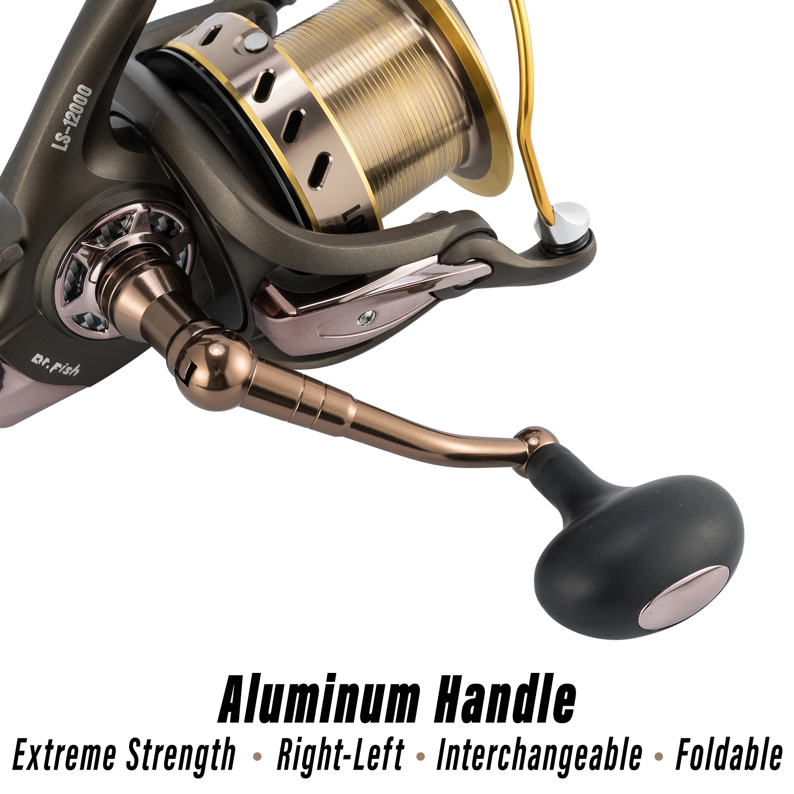 Resistente construido.Cuerpo de grafito PPA6 hecho en alemán, eje de acero inoxidable mejorado, mango plegable de aluminio totalmente CNC y equipo superpotente, juntos ofrecen un carrete confiable para años de pesca deportiva.