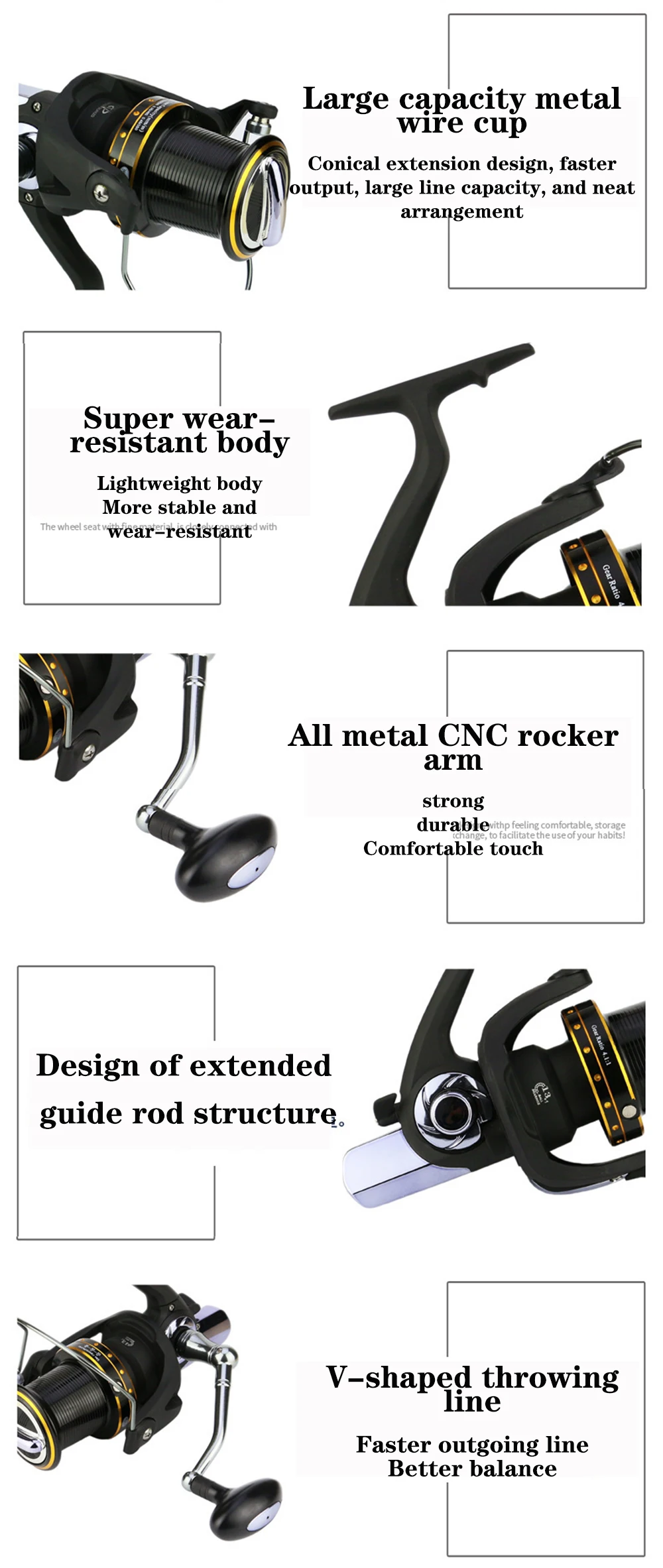 Esta es una práctica rueda de fundición de larga distancia, una verdadera rueda de fundición de larga distancia. La rueda está diseñada específicamente para fundición a larga distancia, y la copa de alambre adopta un diseño en forma de V invertida de acuerdo con la mecánica de ingeniería. Esto reduce eficazmente la fricción entre la copa de alambre y el cable al salir de la línea, que es diferente de las copas de alambre tradicionales. Las copas de alambre tradicionales, para tener mayor capacidad de alambre, harán que la Copa de alambre sea profunda y estrecha, lo que no favorece la fundición. Sin embargo, nuestra copa de alambre de rueda de fundición de larga distancia es ancha y poco profunda, al salir de la línea, la línea seguirá suavemente la copa de línea, logrando el objetivo de disparos de largo alcance, romper fácilmente a través de 200 metros, y hay un registro de clientes que capturan 120 kilogramos de peces.