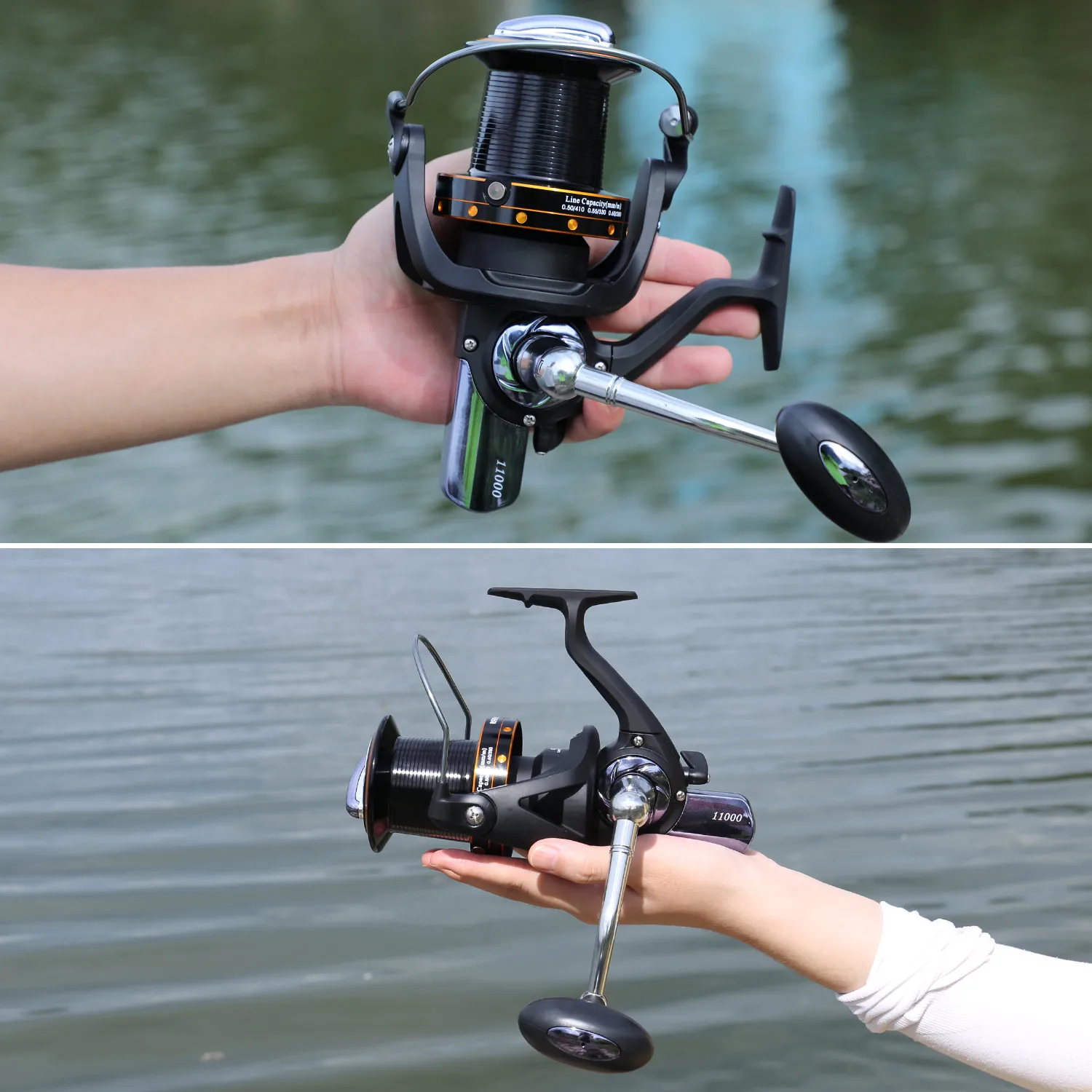 Estructura de varilla guía rueda de fundición remota, cuerpo de rueda de pesca PA66 plástico, Copa cónica de alambre de metal, balancín CNC de metal, agarre grande en forma de huevo