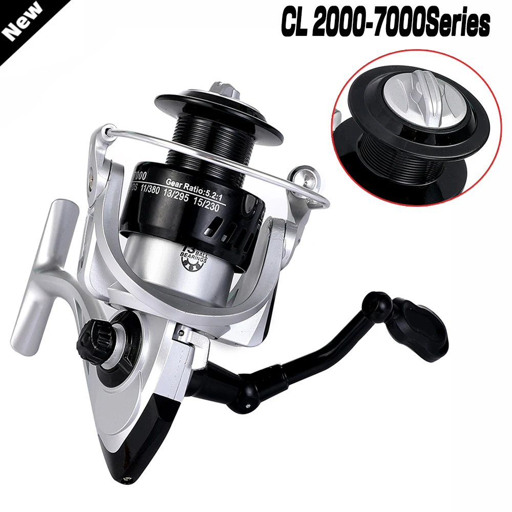 Carrete de pesca giratorio 2000/3000/4000/5000/6000/7000 5,2: 1 Relación de engranaje 10kg carrete de arrastre profundo rueda de carpa señuelo bobina de pesca Lucio