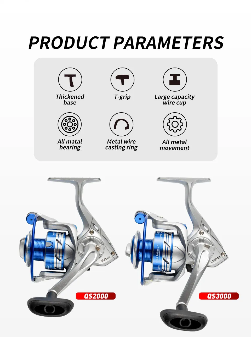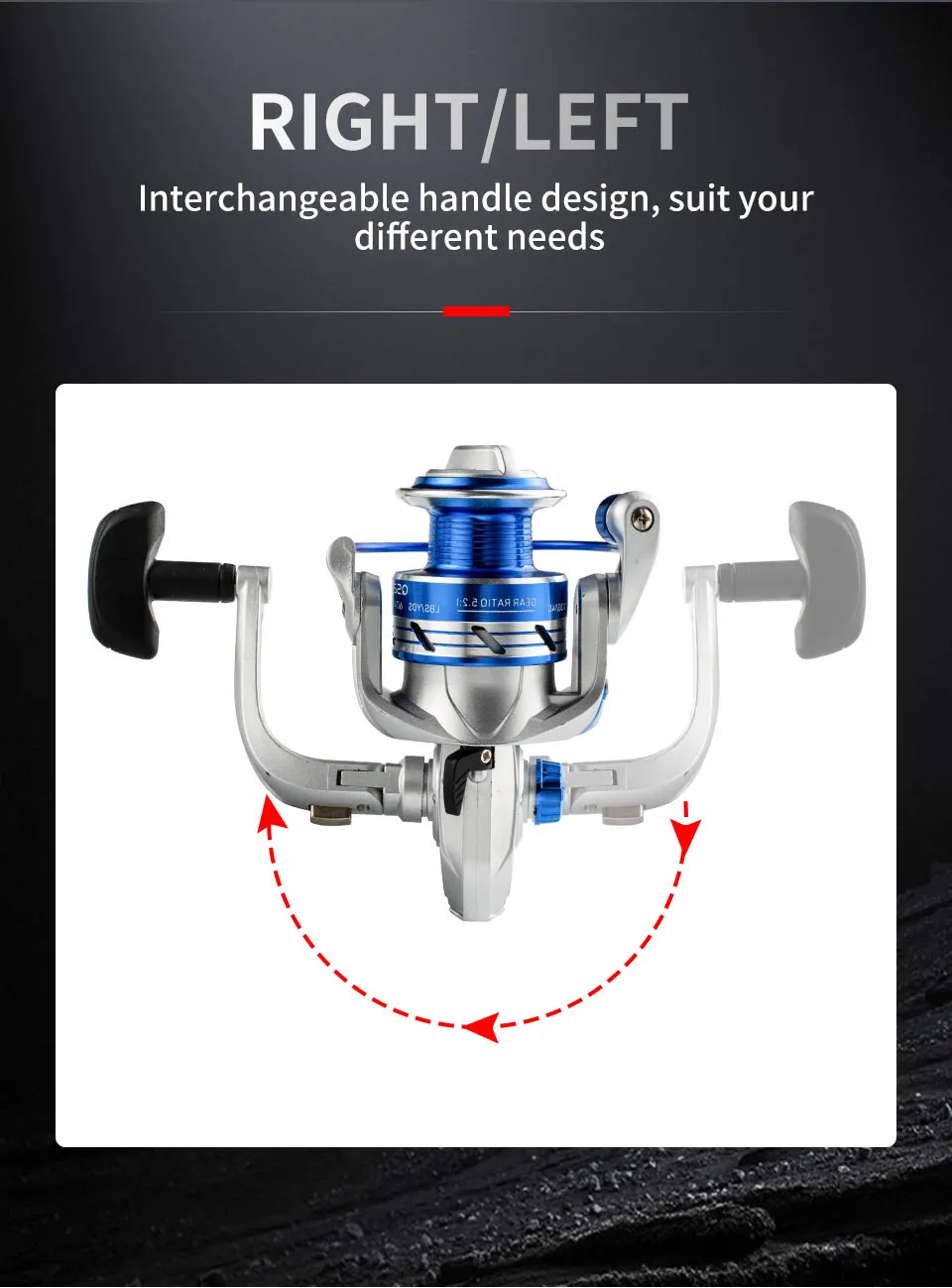 Carrete de pesca giratorio de 3000 tamaños con carrete de Metal para agua dulce, aparejos de pesca de Surf
