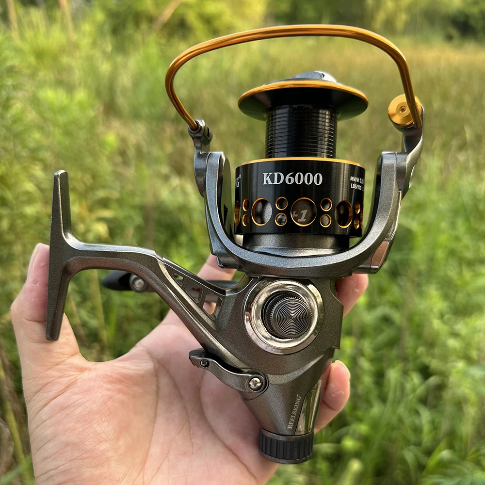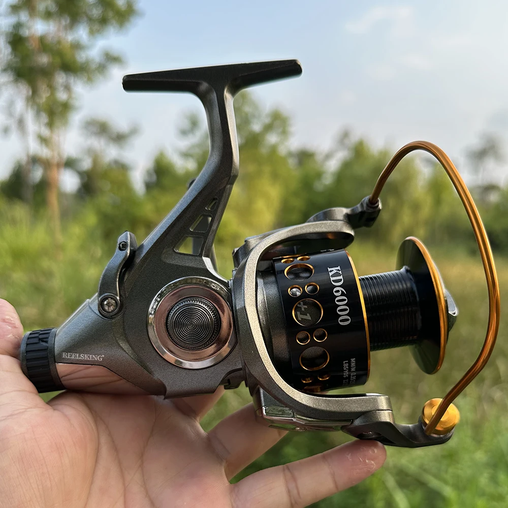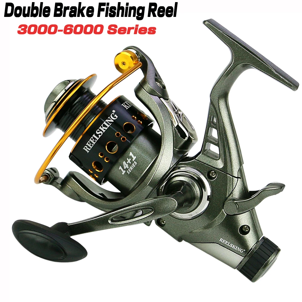 5,2: 1/4.9:1 relación de engranaje carrete de pesca giratorio carrete de Metal 3000-6000Series rueda de pesca de carpa doble freno carrete de fundición suave