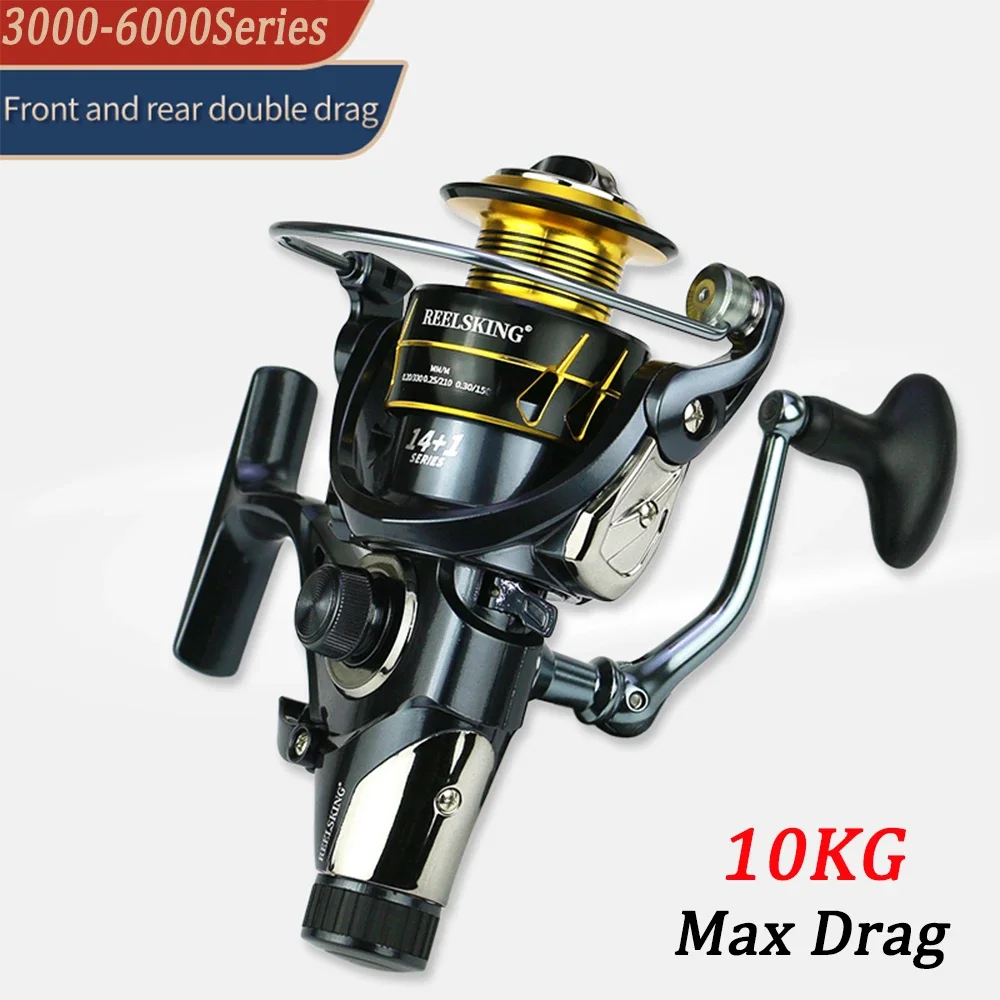 5,2: 1/4.9:1 relación de engranaje carrete de pesca giratorio carrete de Metal 3000-6000Series rueda de pesca de carpa doble freno carrete de fundición suave