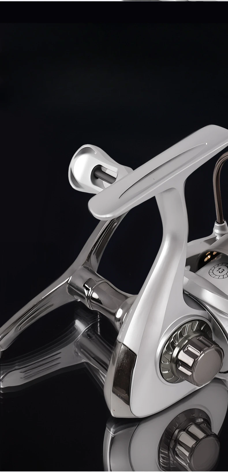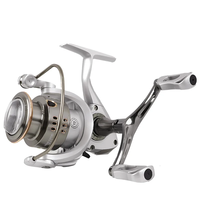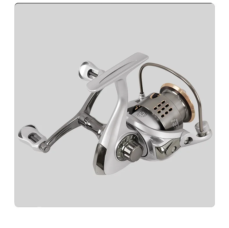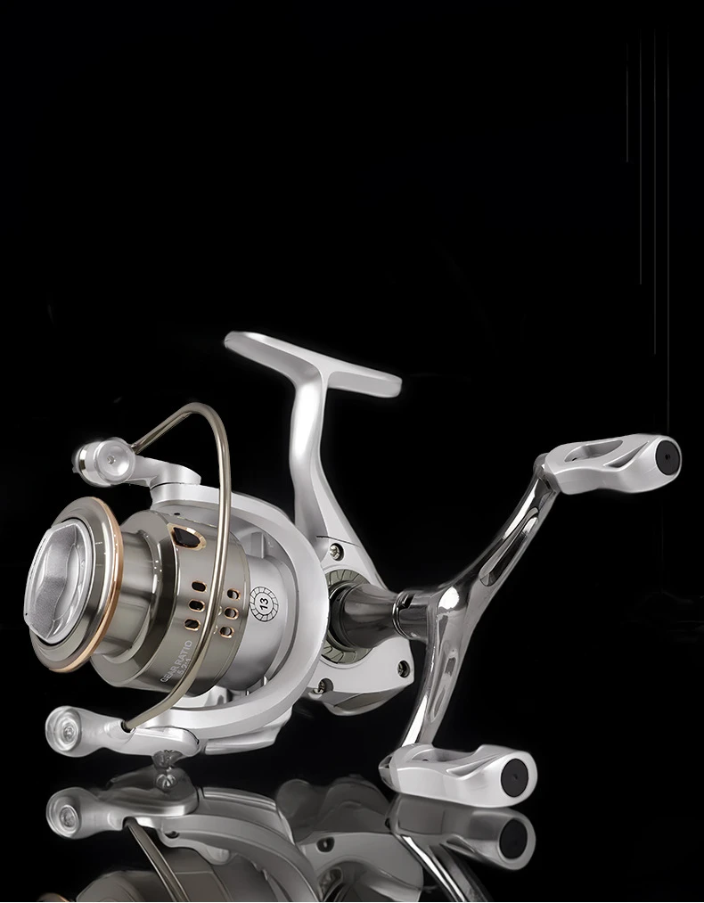Carrete de pesca giratorio 5,2: 1 relación de engranaje 14LB arrastre máximo Spoo de Metal plegable CNC doble brazo para pesca de carpa de agua dulce y salada