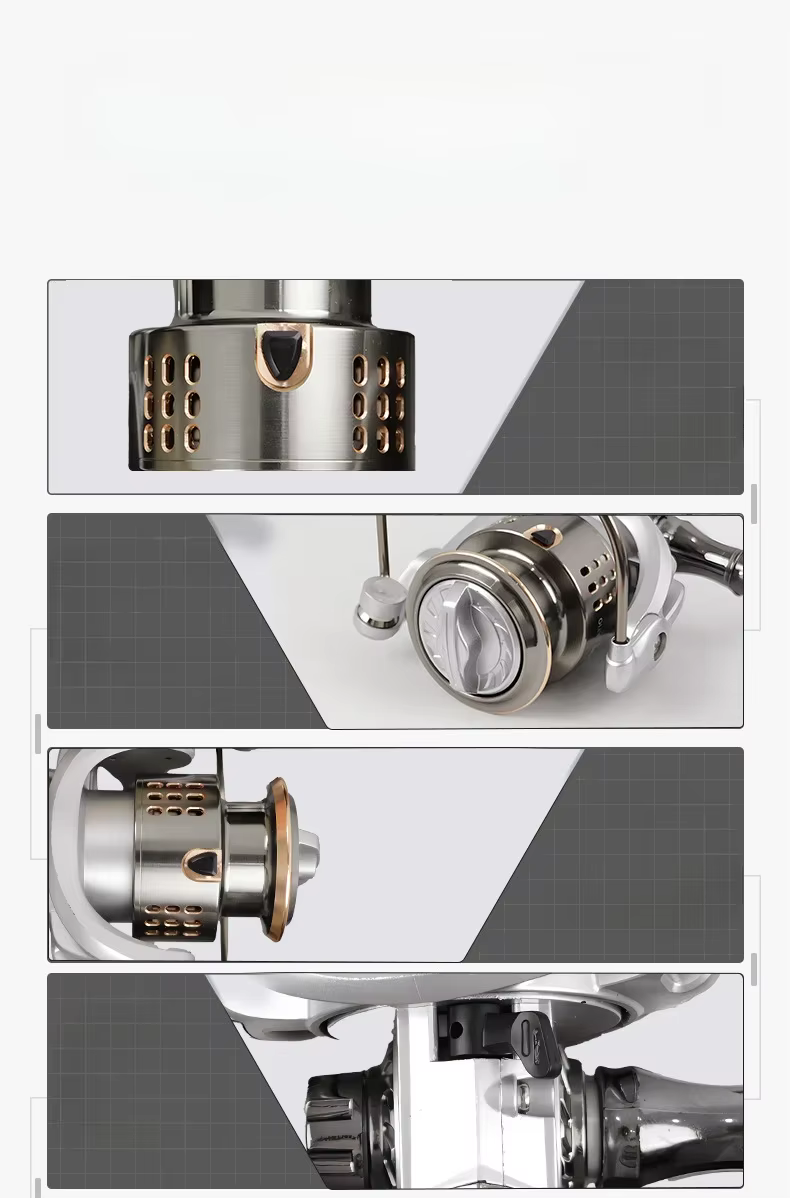 Carrete de pesca giratorio 5,2: 1 relación de engranaje 14LB arrastre máximo Spoo de Metal plegable CNC doble brazo para pesca de carpa de agua dulce y salada