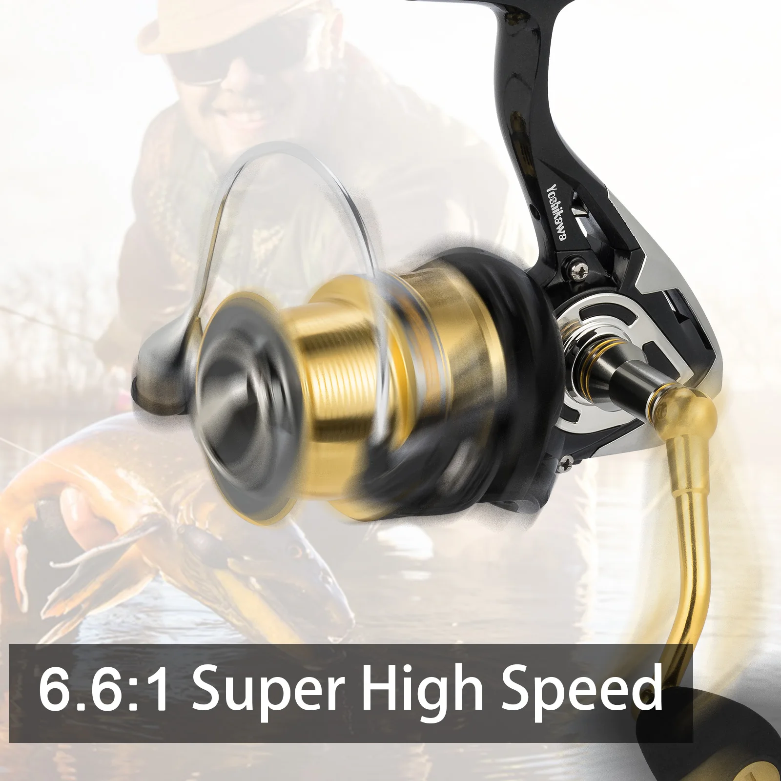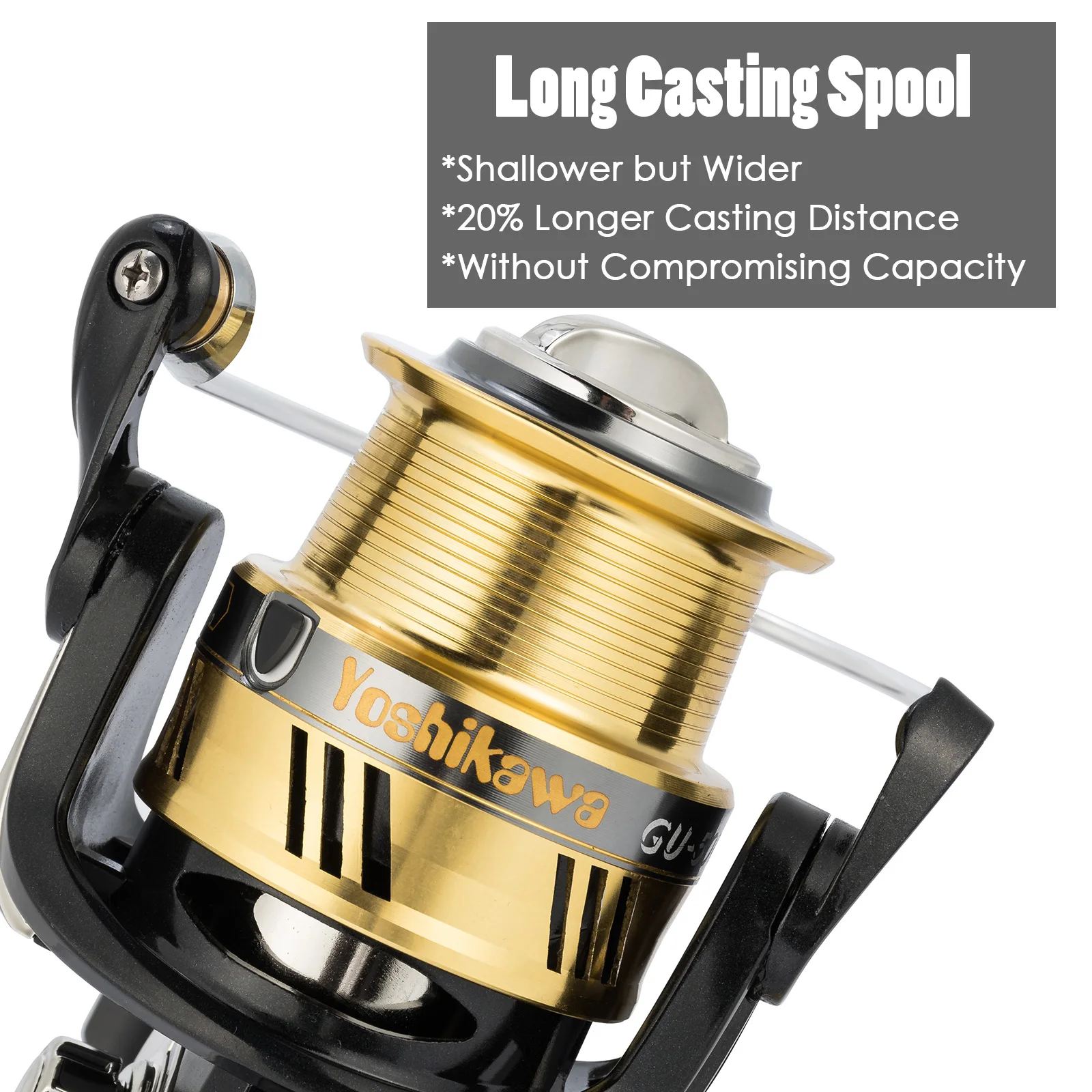 -Con los rodamientos de bolas inoxidables blindados 10 + 1 y engranajes equilibrados por ordenador precisos, se sorprenderá de la increíble suavidad de este carrete giratorio. Los BBs anticorrosión dan a este carrete un rendimiento excepcional en la pesca oceánica.