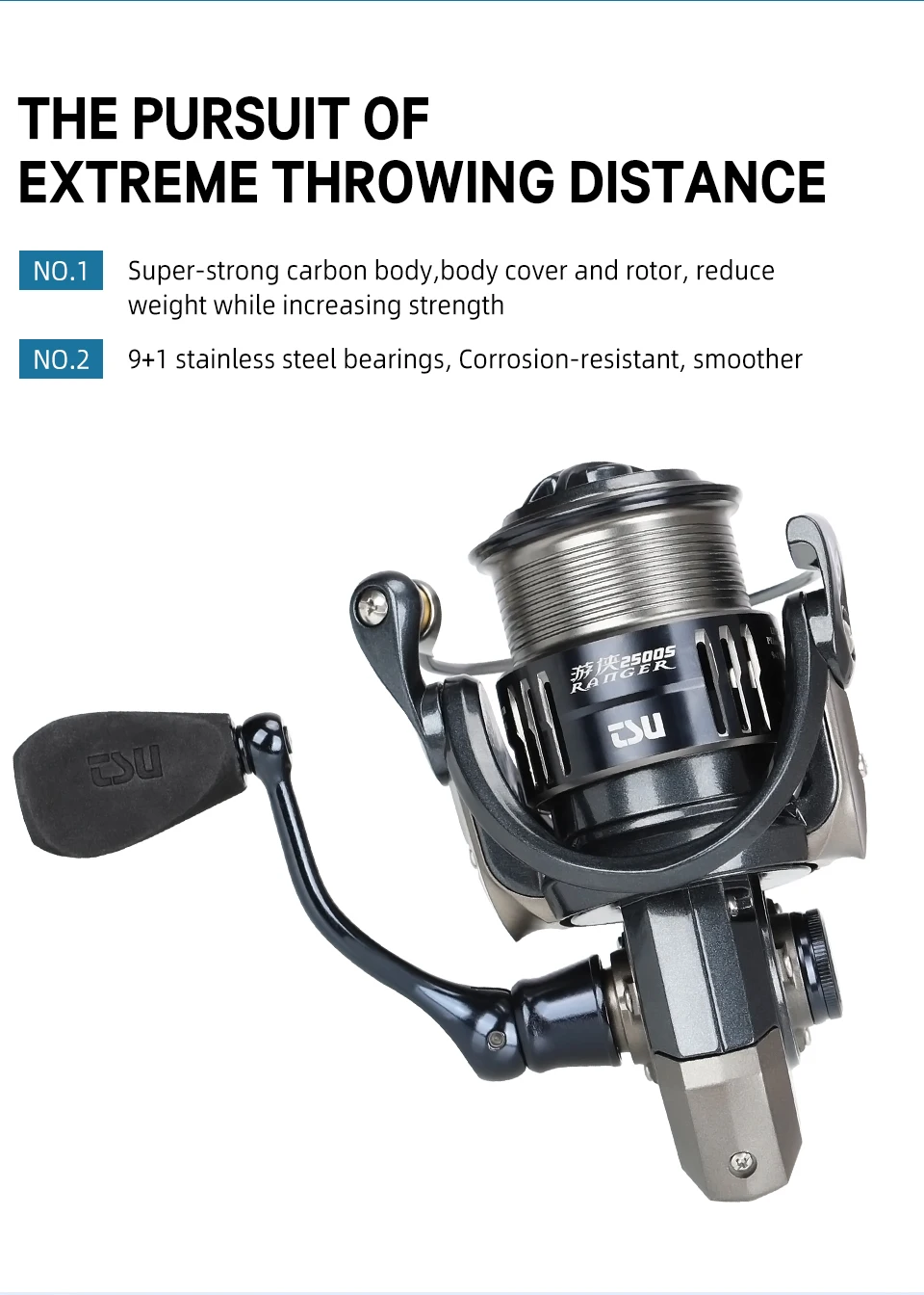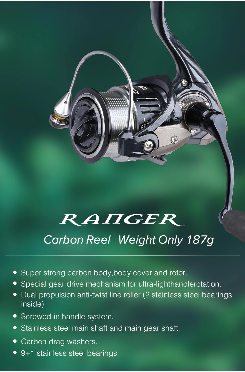 Carrete de pesca giratorio 800 2500S 3000S ultraligero 187g RANGER carrete poco profundo fundición larga pesca en el mar Lucio rueda de lubina