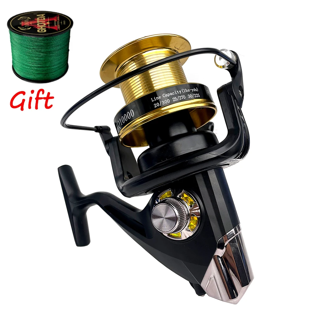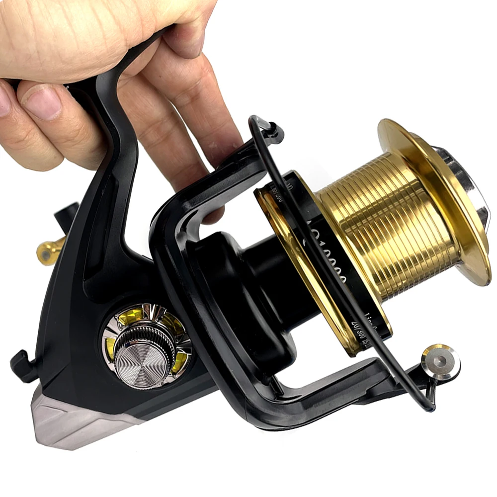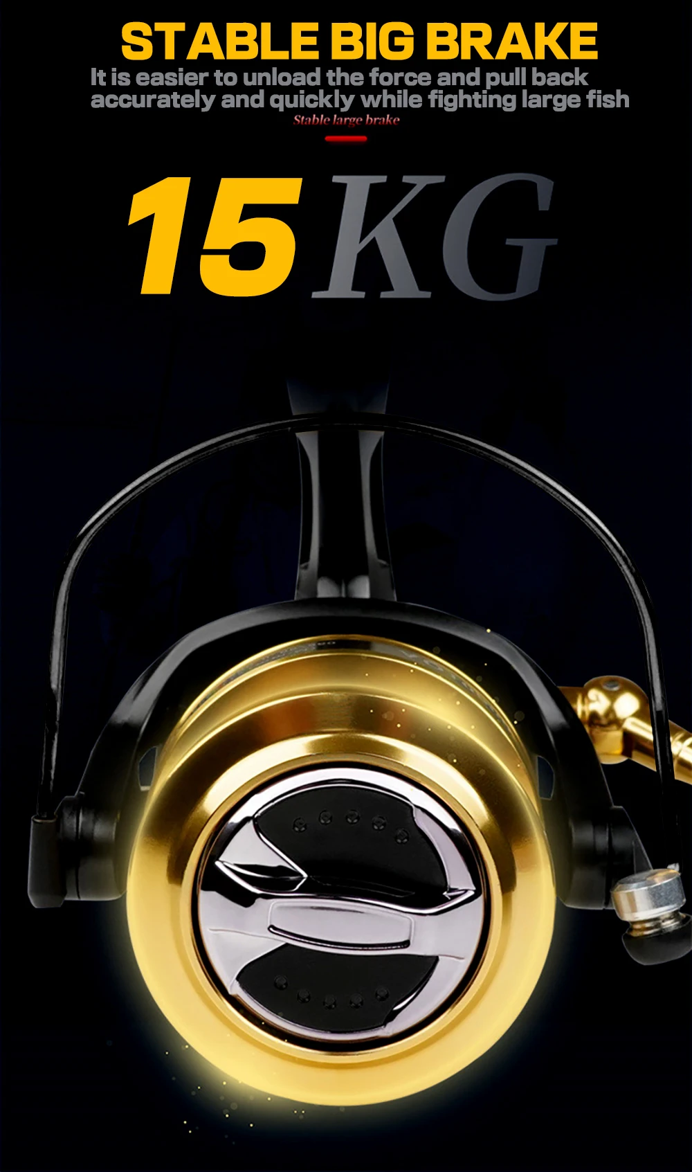 CARACTERÍSTICASFabricados con engranajes de metal duraderos, nuestros carretes de pesca cuentan con carretes grandes y resistentes y están disponibles en tres tamaños: 8000, 9000 y 10000. Su diseño de largo alcance y resistente al agua salada garantiza un alto rendimiento incluso en condiciones impredecibles y un funcionamiento fiable, la resistencia de 12KG y la relación de transmisión de 4,9: 1 garantizan una fuerte fuerza de frenado y un funcionamiento suave, especialmente diseñado para luchar contra peces grandes.Paquete incluido