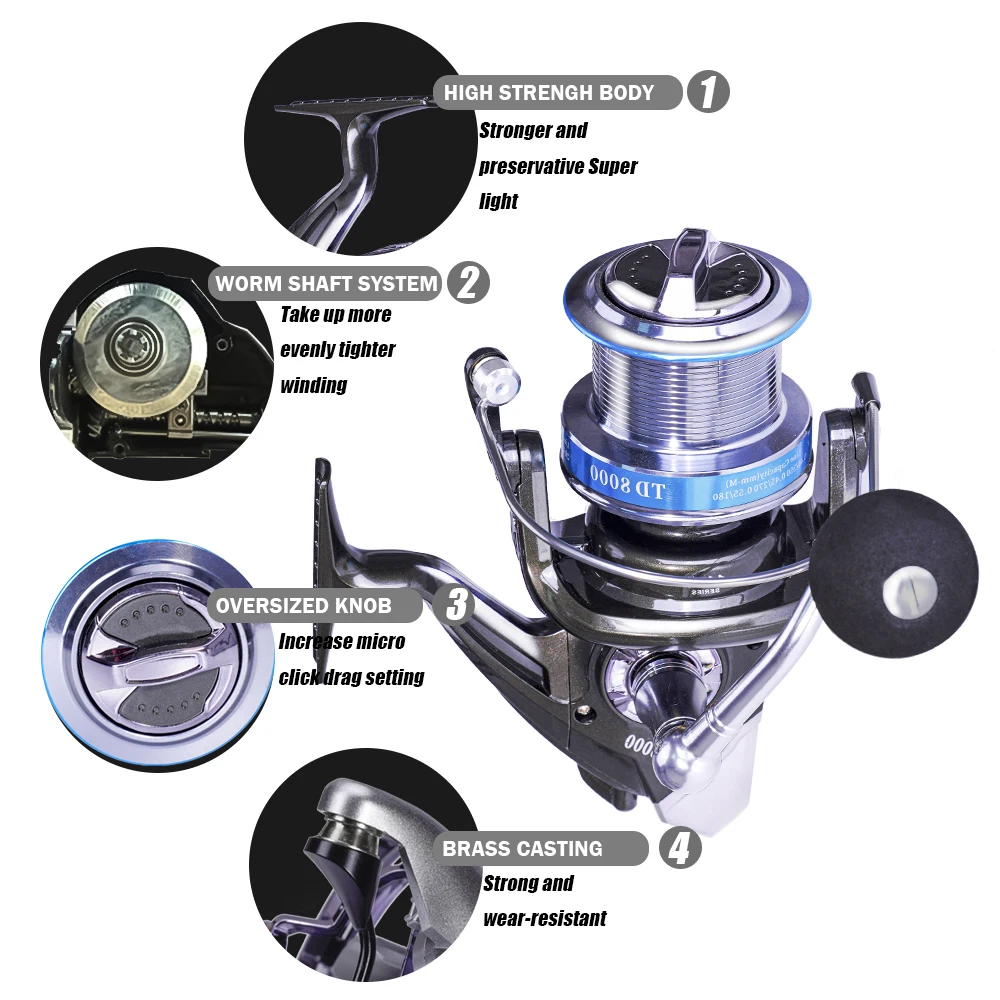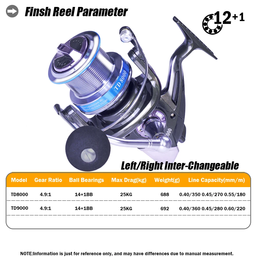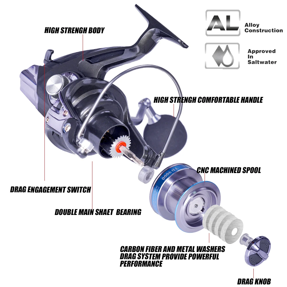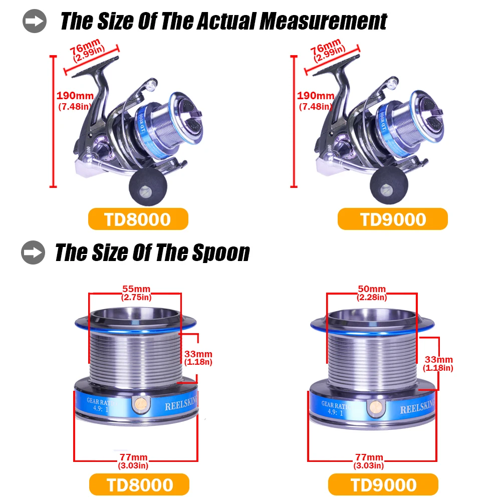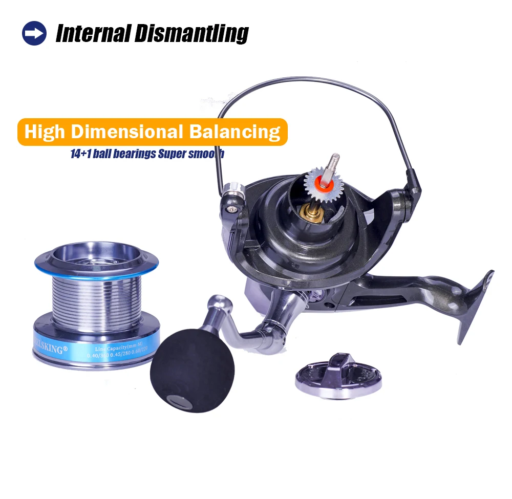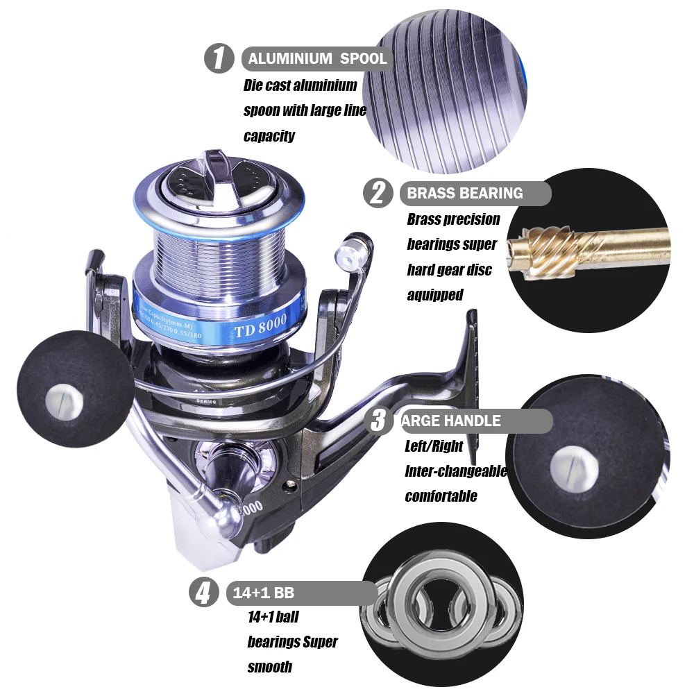 Carrete de pesca giratorio, serie 8000 9000, 14 + 1BB, 4,9: 1, relación de engranaje, rueda de pesca de carpa y lubina, carrete de Metal, accesorios para aparejos de pescado