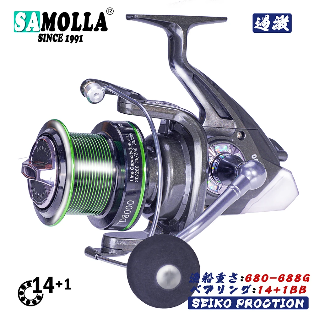 Carrete de pesca giratorio, serie 8000 9000, 14 + 1BB, 4,9: 1, relación de engranaje, rueda de pesca de carpa y lubina, carrete de Metal, accesorios para aparejos de pescado