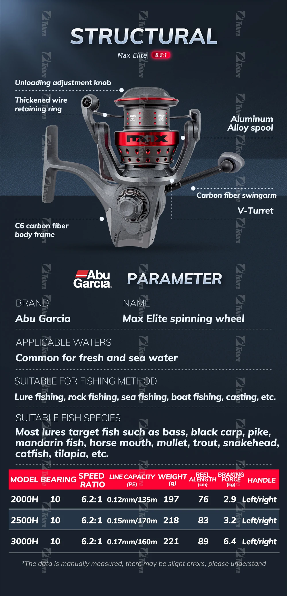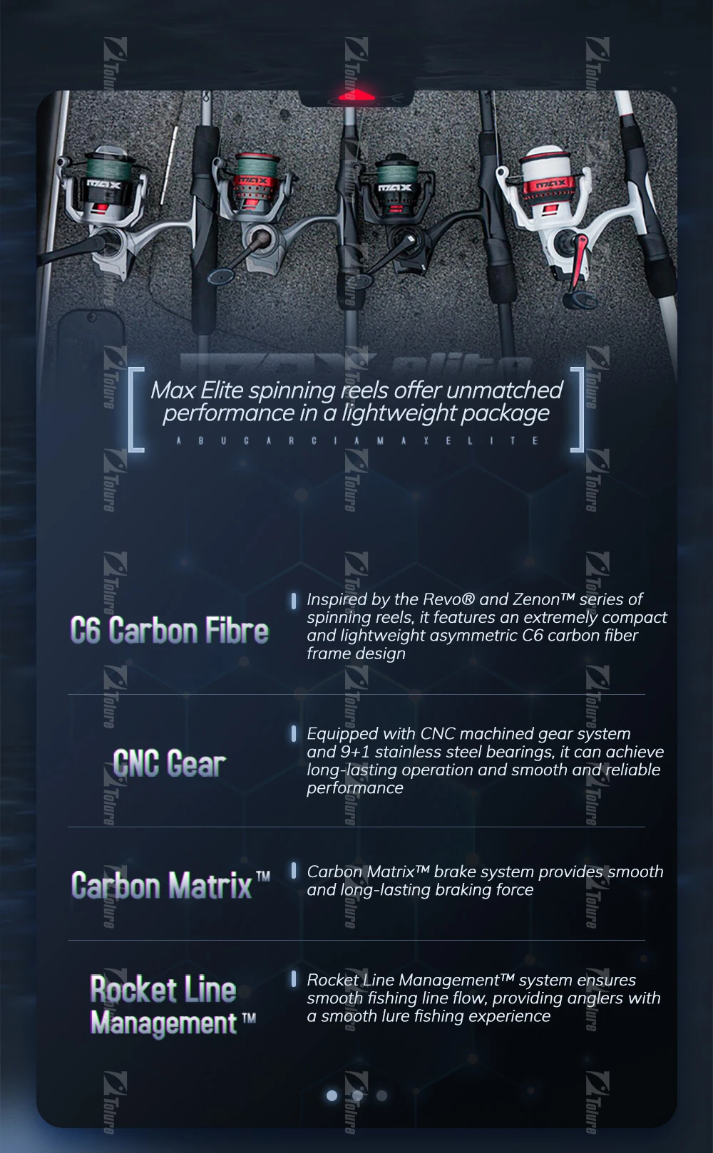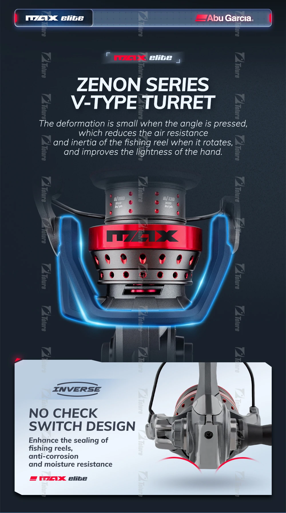 Carrete de pesca giratorio ABU GARCIA MAX Elite 6,2: 1 9 + 1BB arrastre máximo 2,9-6,4 KG serie Zenon torreta de V-TYPE C6 marco de fibra de carbono