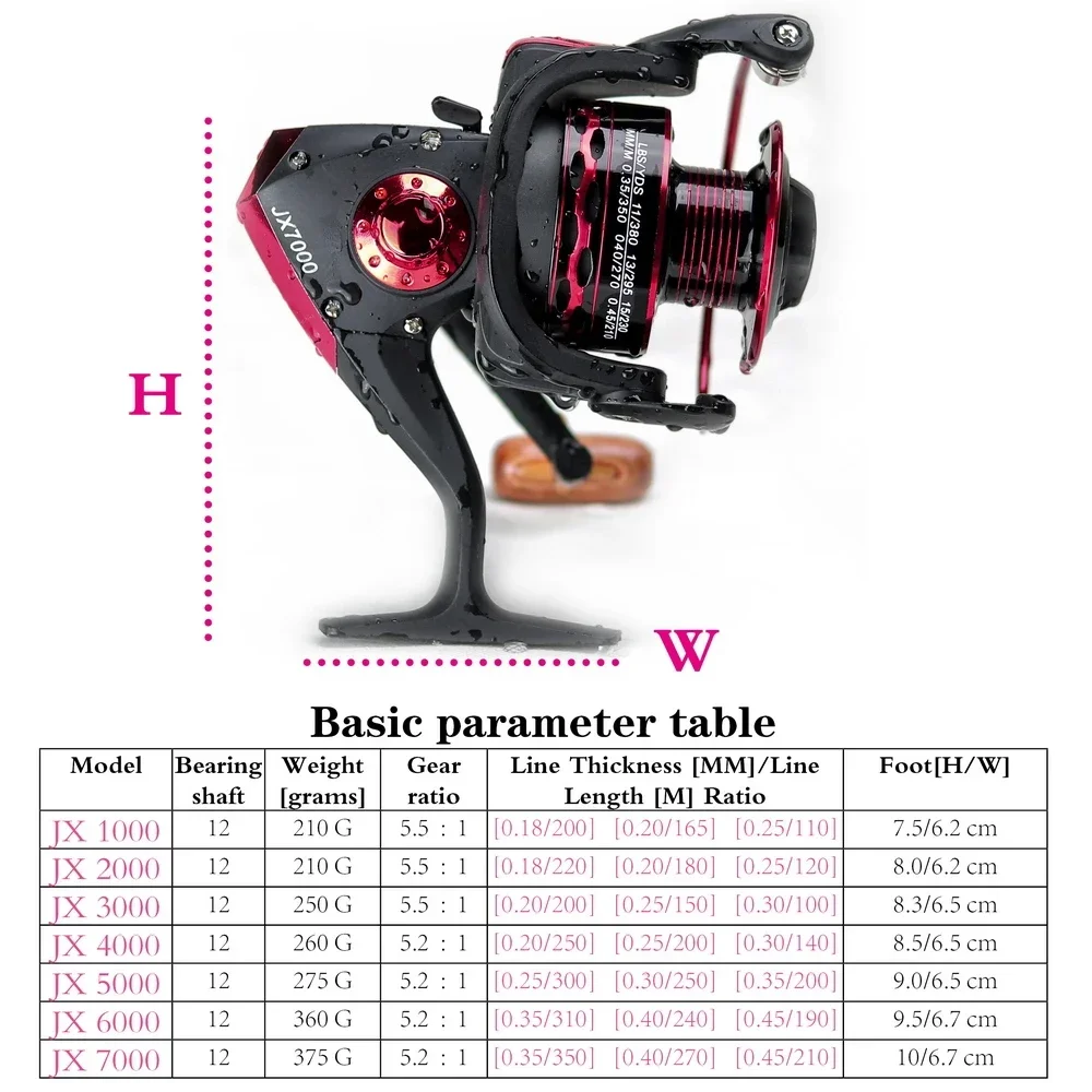 EF 1000- 9000 Carrete de pesca 12BB 5,5: 1 Carrete de metal Carretes de pesca giratorios Carrete de mango plegable Europa Venta caliente