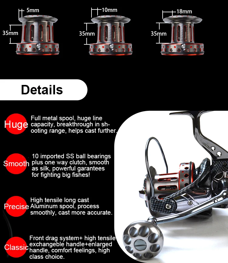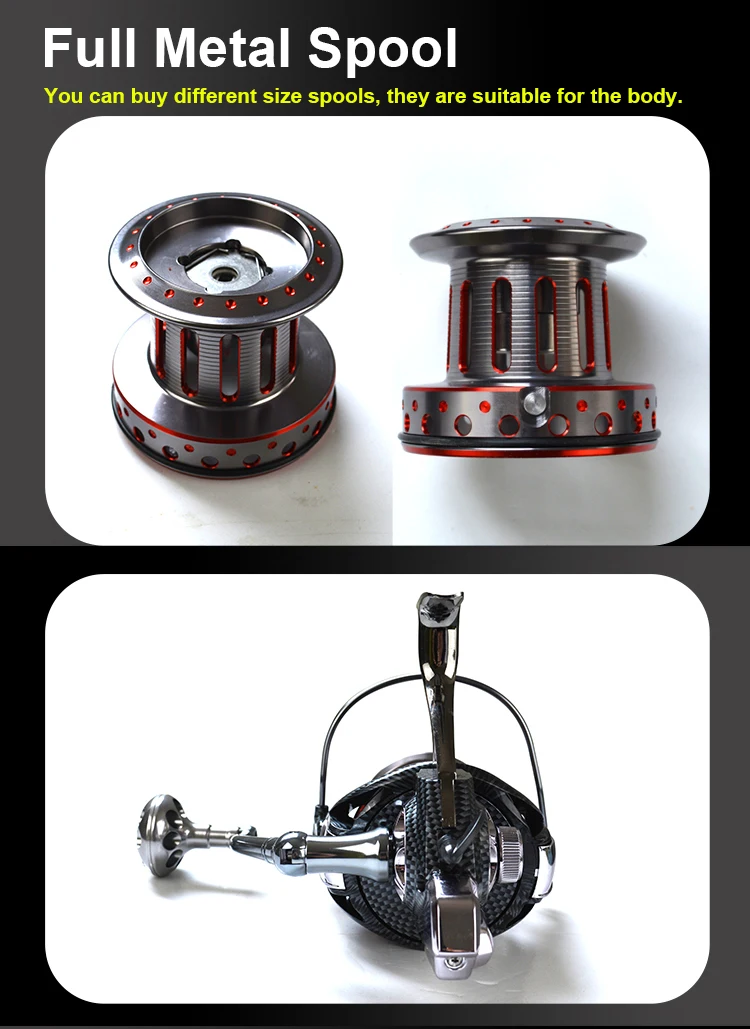 ¡Gran venta!Cuerpo metálico completoTamaño 8000 10000 12000 Carretes giratorios Carrete de arrastre grandeCarrete Surf Cast.