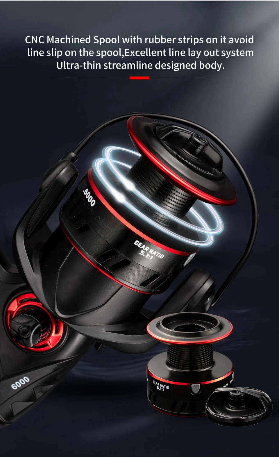 • Adecuado para la pesca de agua dulce y agua salada :Este carrete es adecuado tanto para la pesca de agua dulce como salada, por lo que es una opción versátil para cualquier pescador.