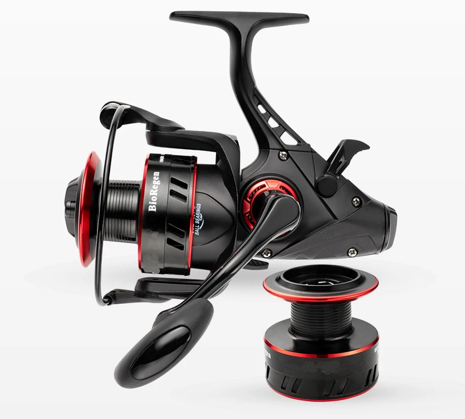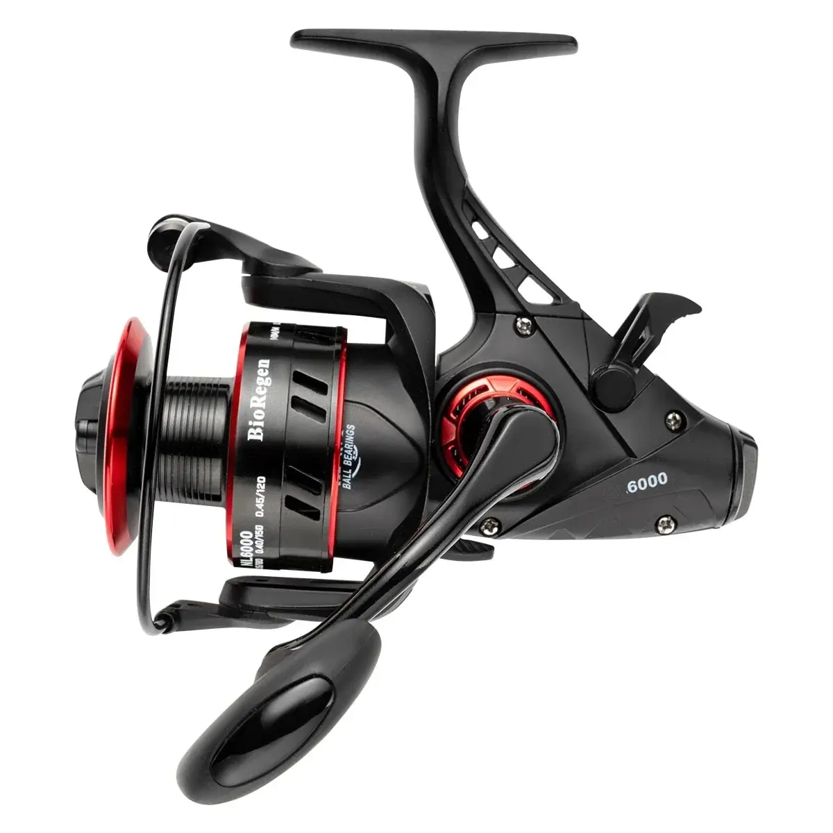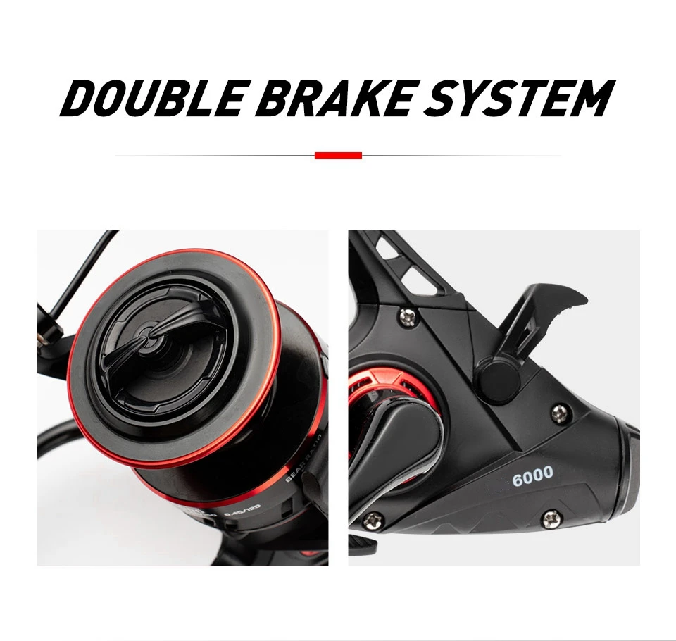 Carrete de pesca giratorio 5000 6000 tamaño agua dulce agua salada carpa pesca carrete doble freno suave fundición carrete Surf Casting carrete