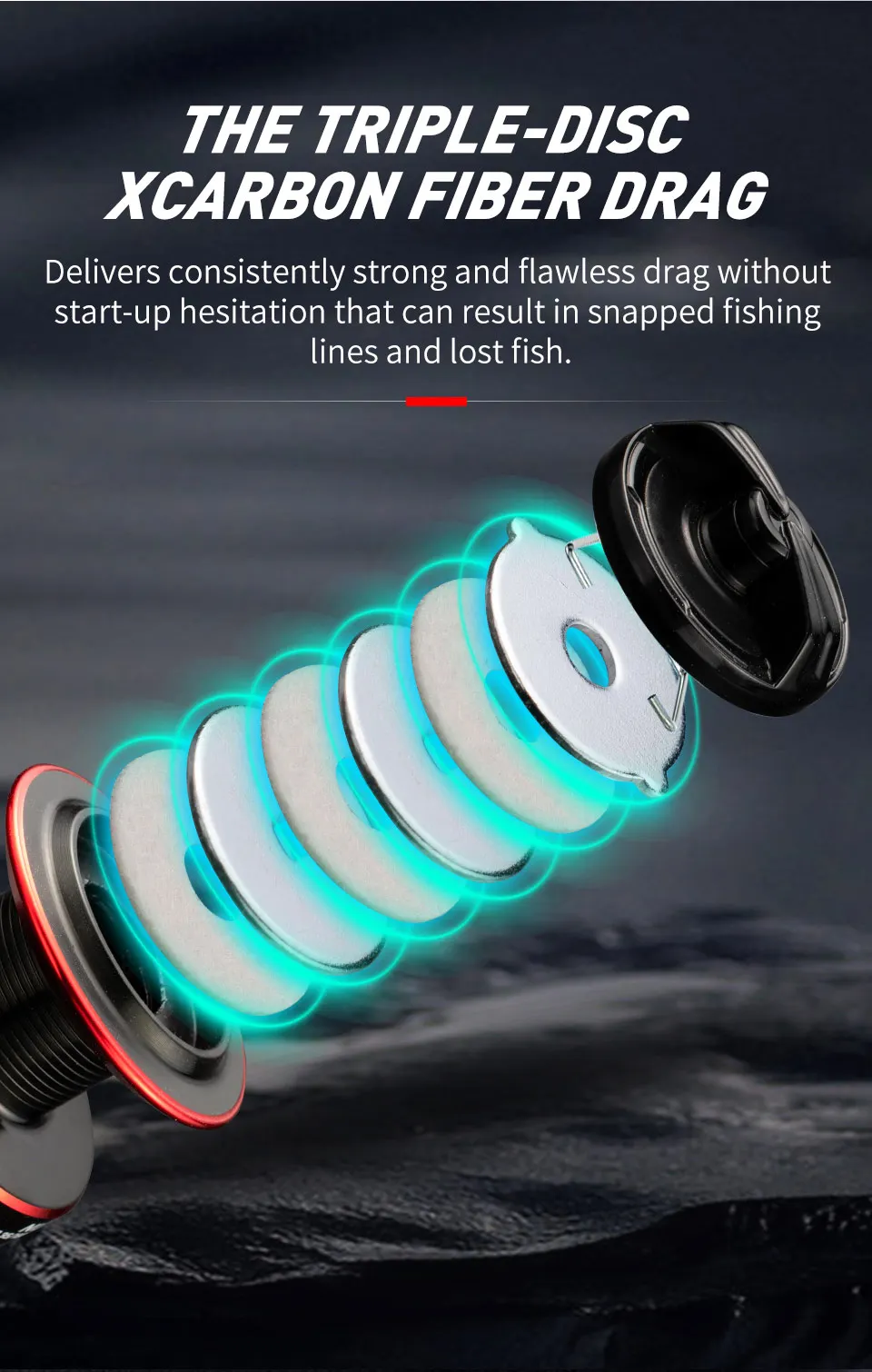 • Sistema de doble freno :El sistema de doble freno garantiza una fundición suave y constante, lo que facilita la captura de peces.