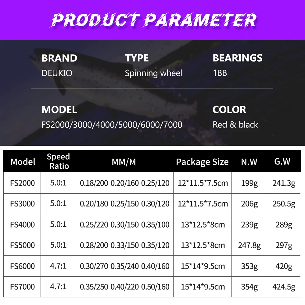 Carrete de pesca giratorio para agua salada, accesorio de Metal de alta velocidad, FS2000-7000, 5,0: 1, 1 unidad