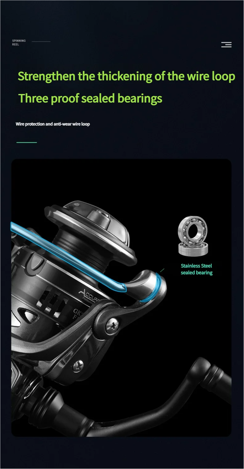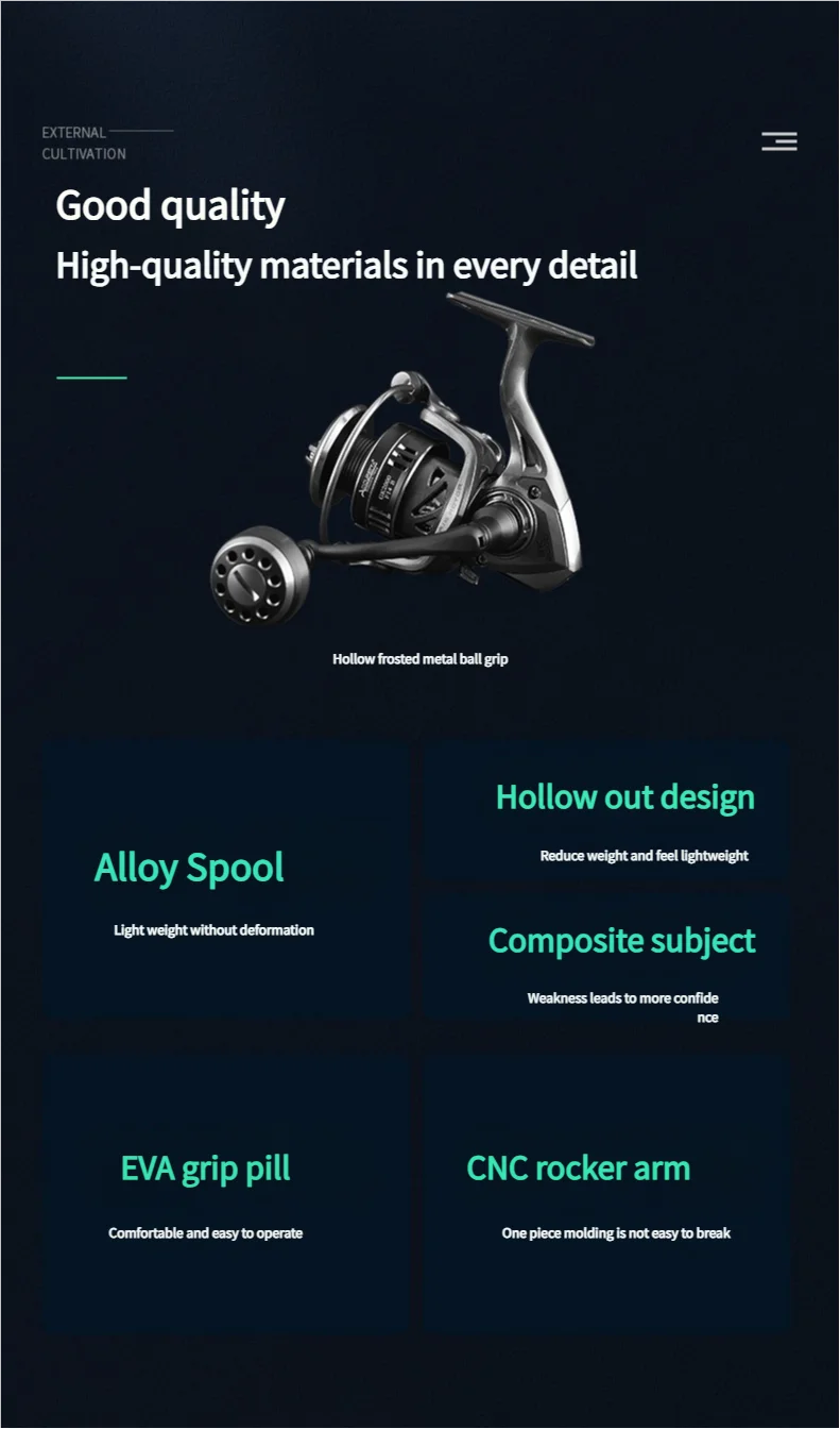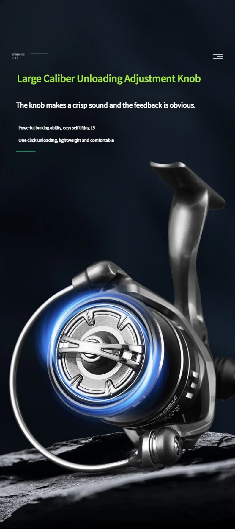 2.Carrete mecanizado CNC totalmente metálico: carrete totalmente metálico de alta precisión con construcción liviana pero resistente.