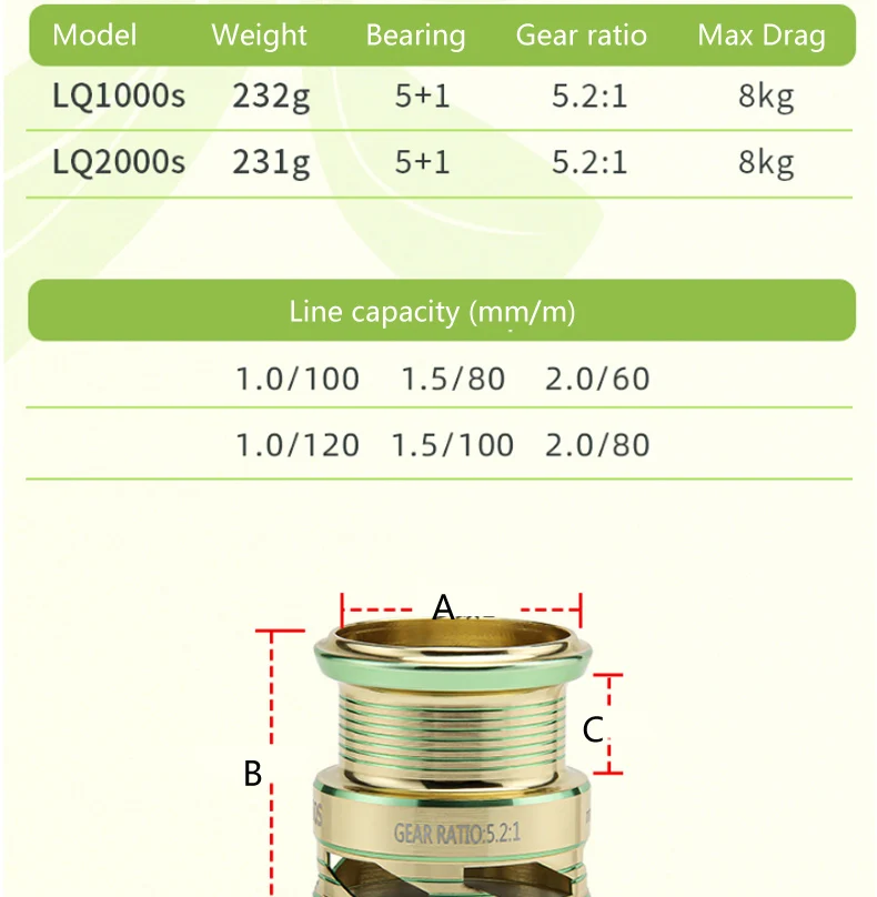 Carrete de Pesca giratorio de aleación de aluminio 5,2: 1, alta calidad, 1000/2000, rueda de Pesca fuerte de lubina, carrete de baitcasting