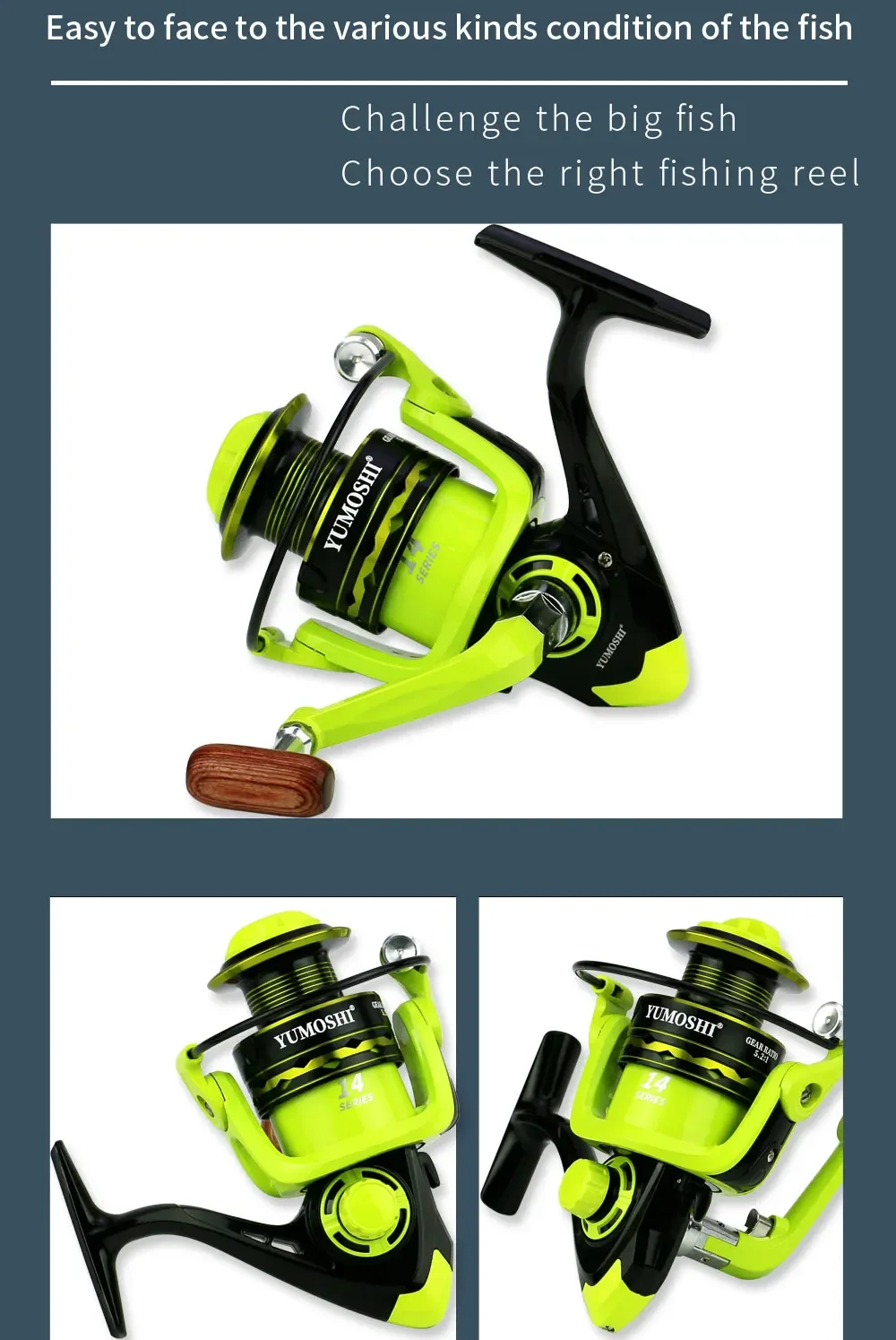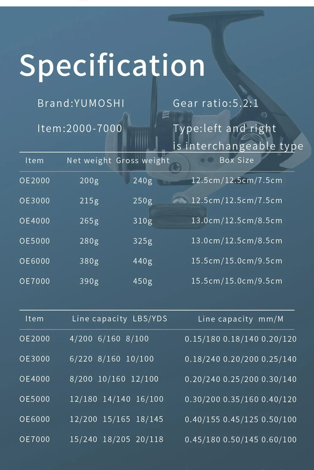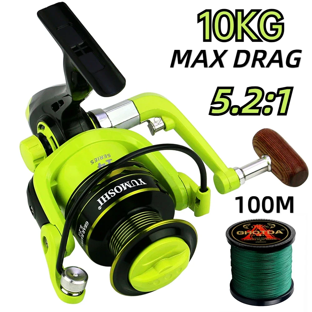 Carrete de pesca giratorio de alta calidad Serie 2000-7000 5,2: 1 carrete de Metal de alta velocidad arrastre grande 10KG con línea trenzada de 100M