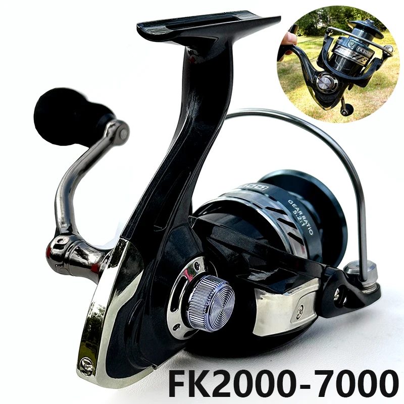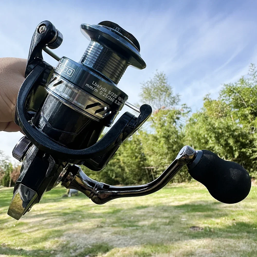 Carrete de pesca giratorio de alta resistencia, serie 2000-7000, relación de engranaje 5,2: 1, rueda de Jigging de agua salada, arrastre de tracción grande de 8KG para toda el agua