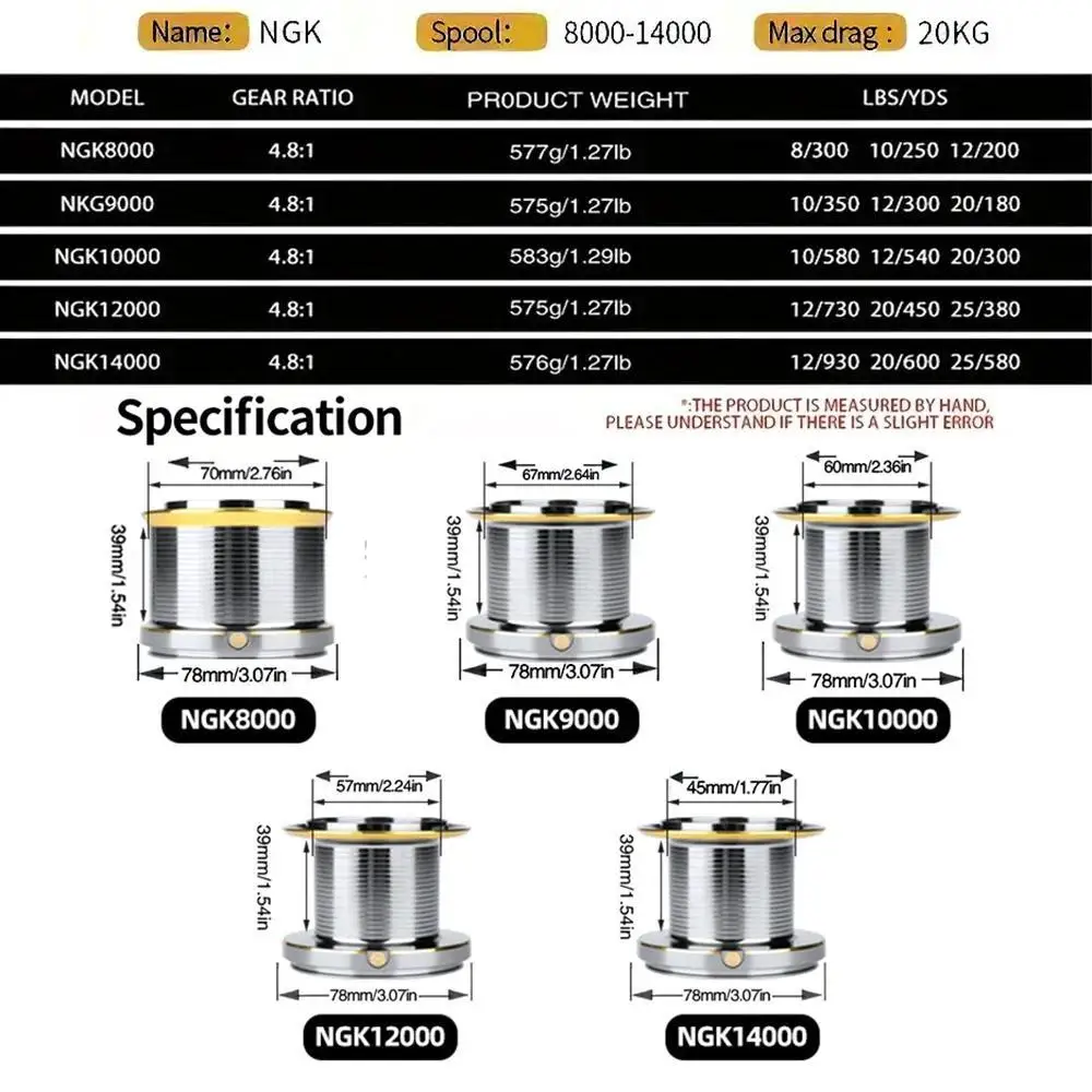 Carrete de pesca giratorio de alta resistencia Serie 8000-12000 Suave Durable