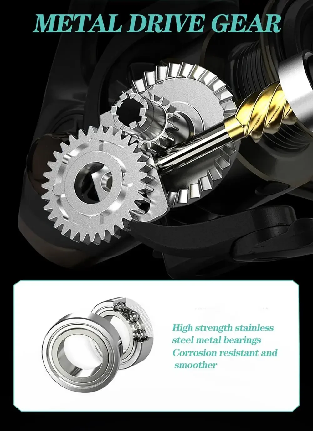Eje principal de gran tamaño totalmente metálico, potentes engranajes de aleación de zinc de precisión y rodamientos de bolas de acero inoxidable con doble blindaje.