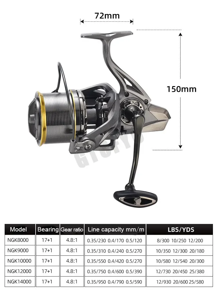 6. Cuerpo de carrete de material compuesto alto, largele resistente.
