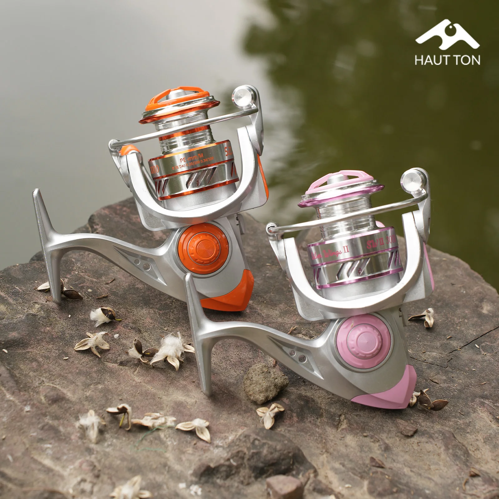 Carrete de pesca giratorio, arrastre máximo de 14KG/30,86LB, relación de engranaje 5,2: 1, brazo basculante atornillable plegable de Metal PINK SW