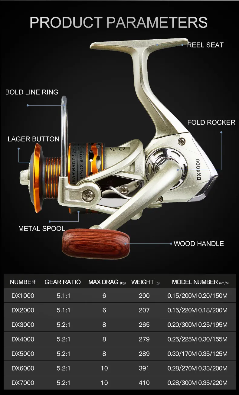 es mucho más pequeño de lo que pensé, DX5000, pero parece ser un carrete sólido, es como en el anuncio, dice que el material de aluminio, la taza es pero el cuerpo es plástico como una sustancia, sin embargo parece sólido, pero tenga en cuenta eso al comprar