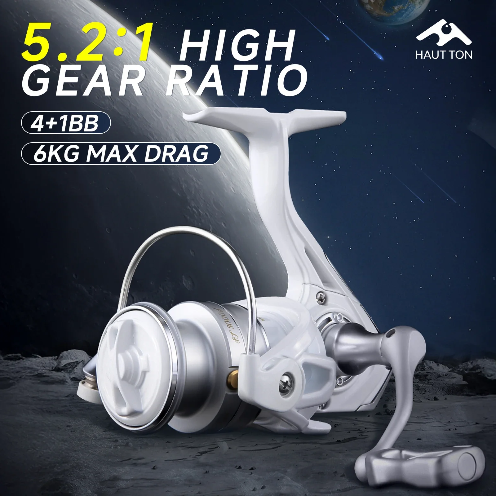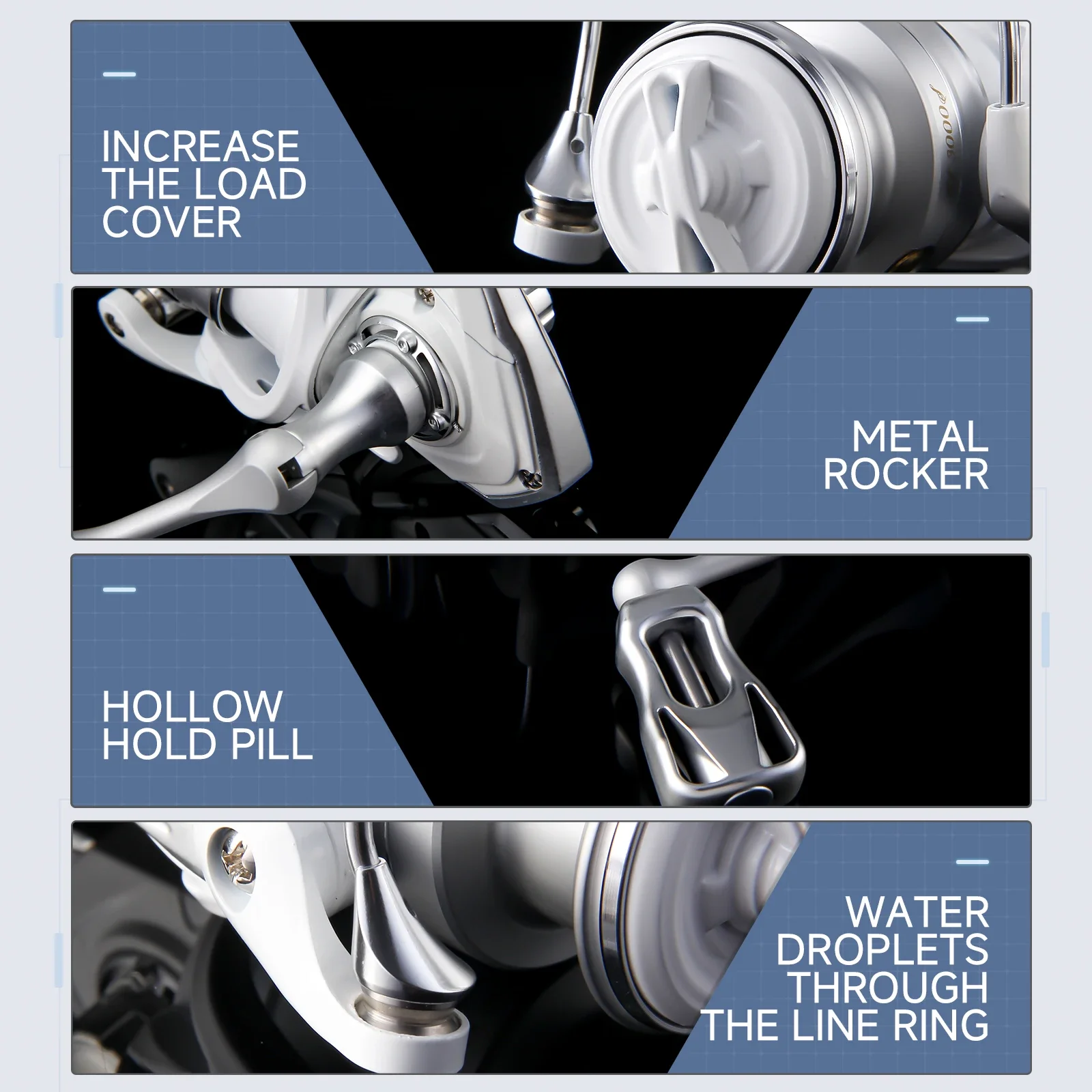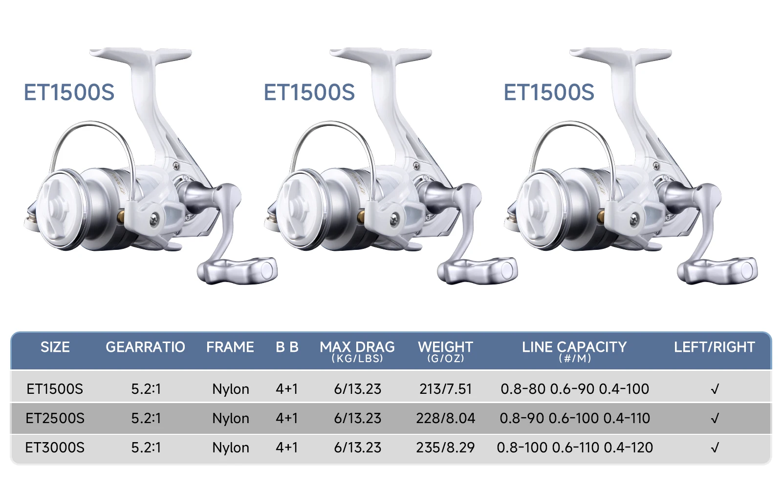 Carrete de pesca giratorio blanco serie ET1500/250/3000 4 + 1BB 6kg/13,23LB arrastre máximo perfecto para pesca en agua dulce y salada
