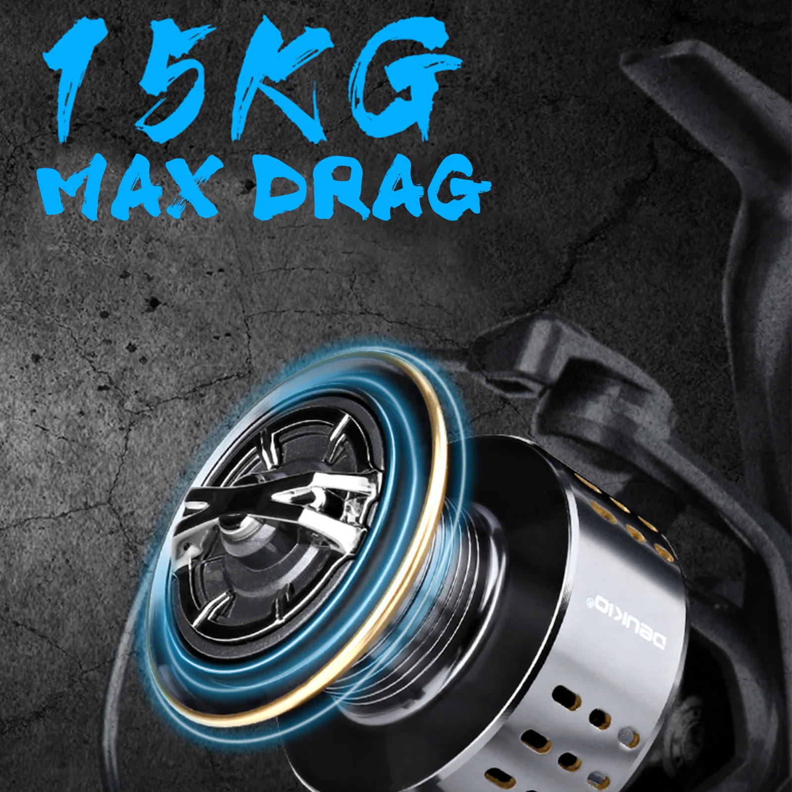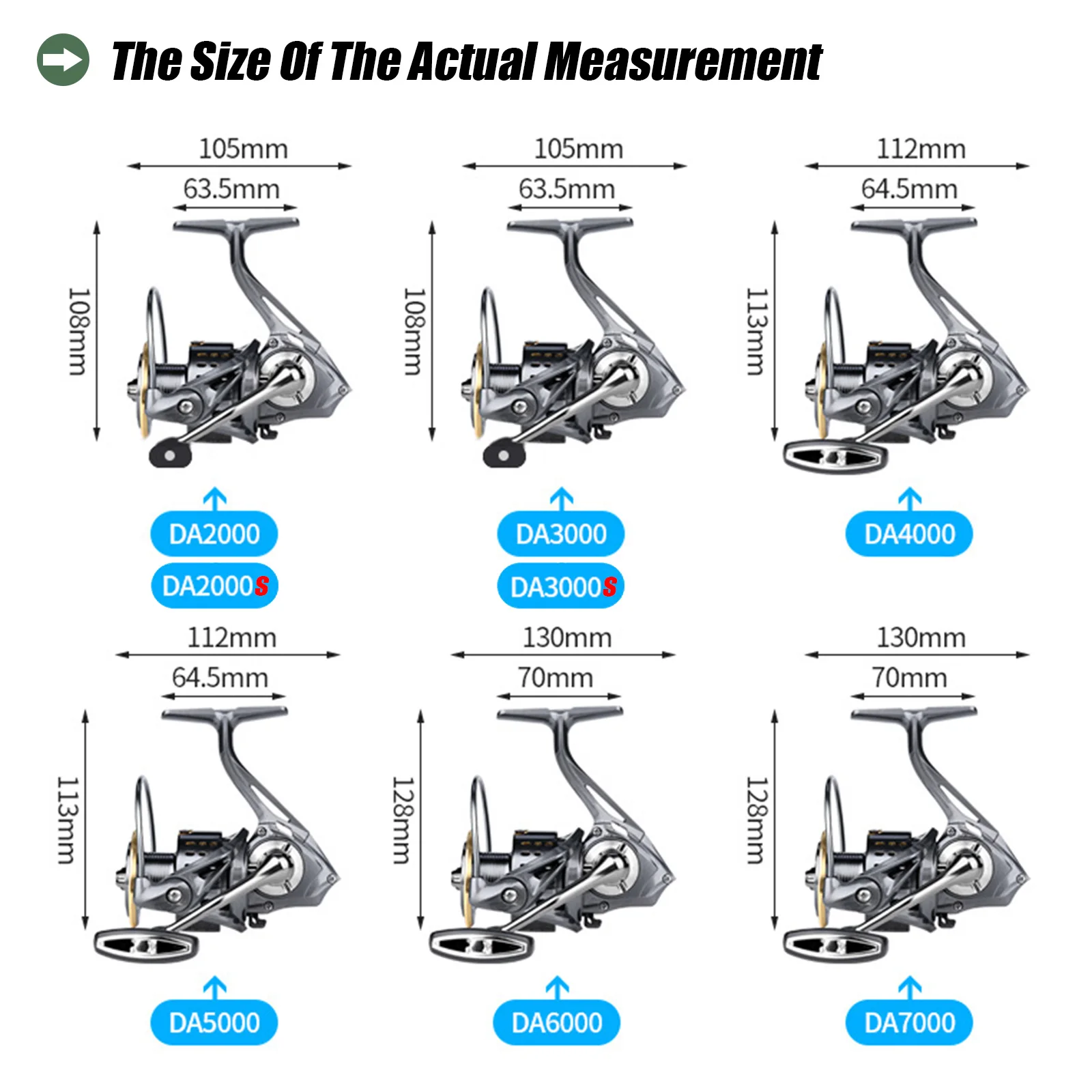 DA7000 | Peso: 244g | Relación: 4,9: 1 | Arrastre máximo: 15kg | Capacidad de Línea: 0,35/270 0,40/210 0,45/175