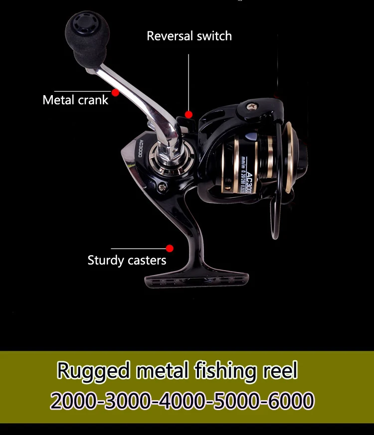 Spinning Fishing Reel 12BB Bearing Balls 1000-6000 Series Metal Coil Spinning Reel Boat Rock Fishing Wheel$13.9