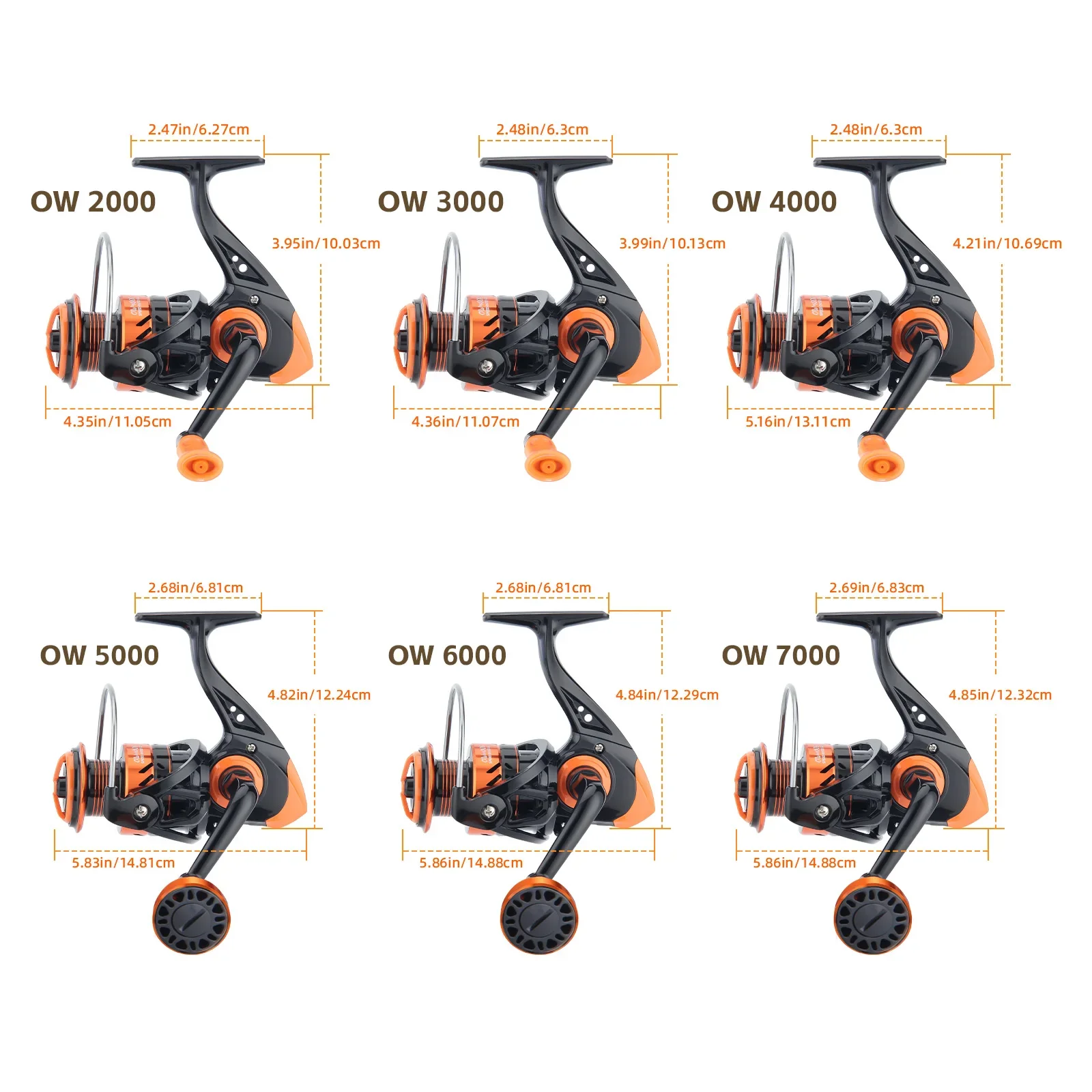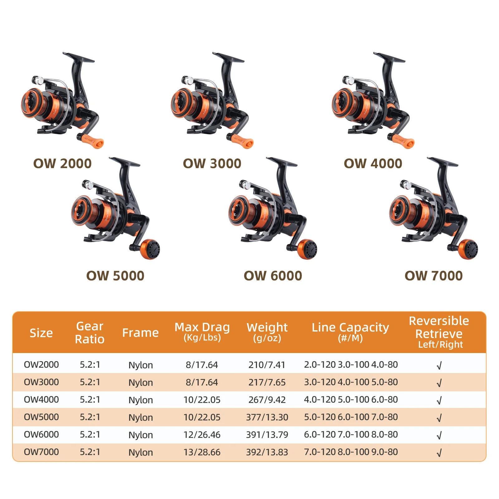Carrete de pesca giratorio con brazo basculante plegable de un solo clic de Metal OW2000-7000, relación de engranaje 5,2: 1, arrastre máximo de 13KG/28,66LB