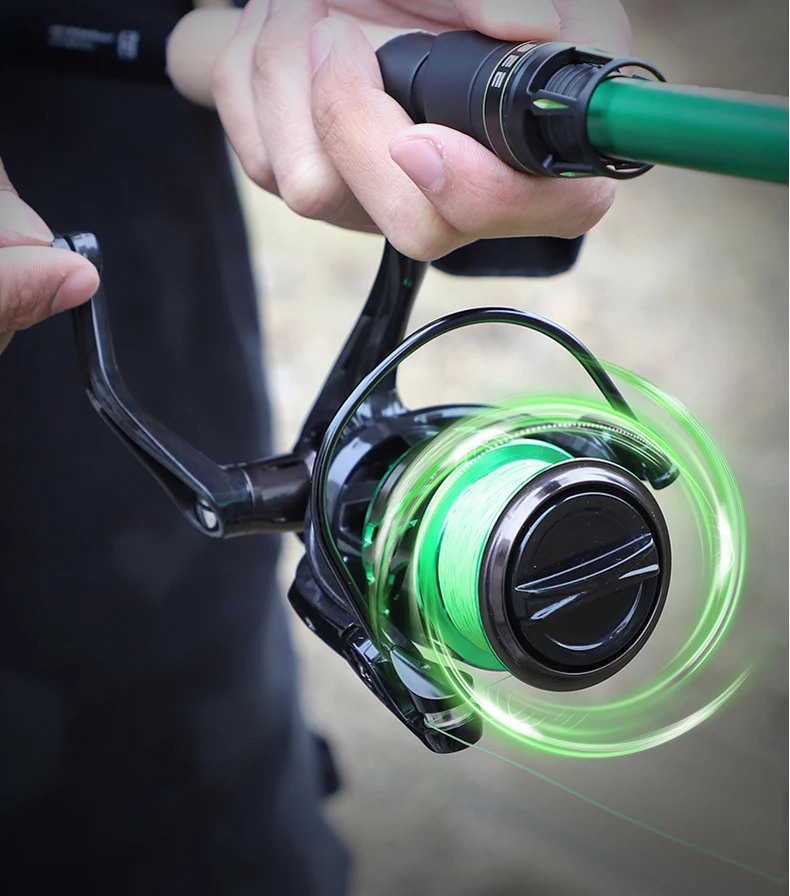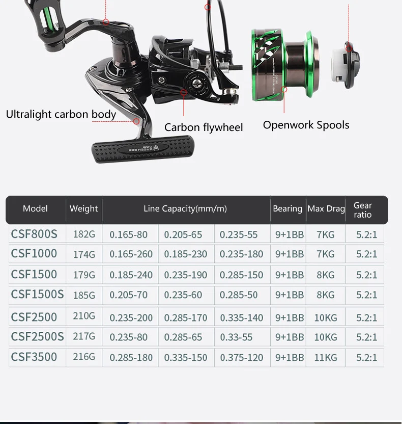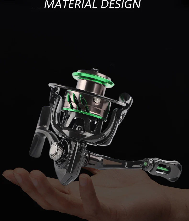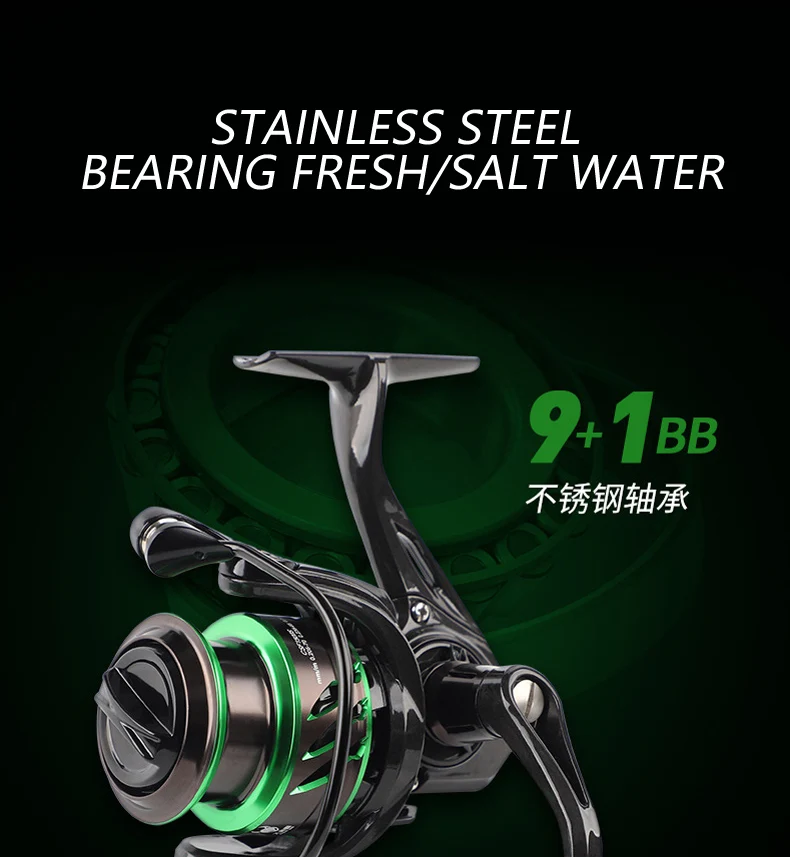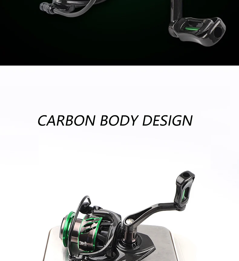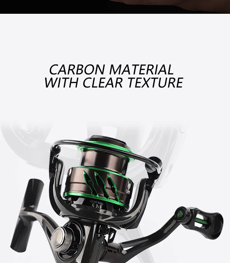 Carrete de pesca giratorio de carbono para agua dulce, rueda anticorrosiva de alta calidad 9 + 1BB, relación de engranaje 5,2: 1