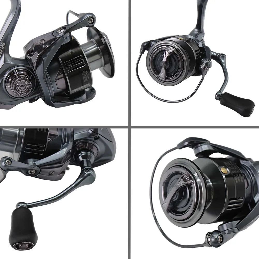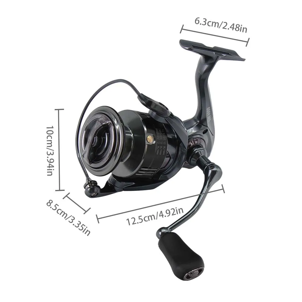 El carrete giratorio está meticulosamente elaborado con un cuerpo, rotor y placa lateral de fibra de carbono, lo que lo convierte en uno de los más livianos de su clase, con un peso de tan solo 5,5 oz. ¡Esta casa eléctrica liviana es perfecta para luchar contra peces grandes!
