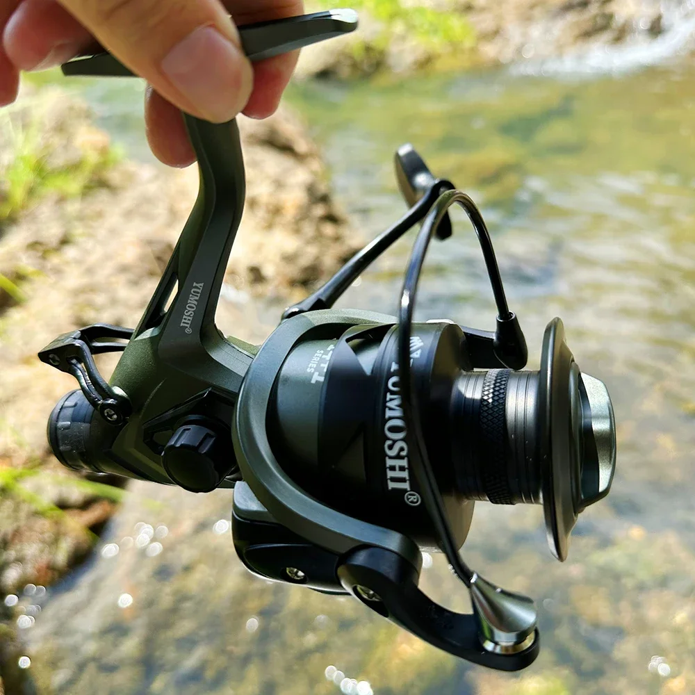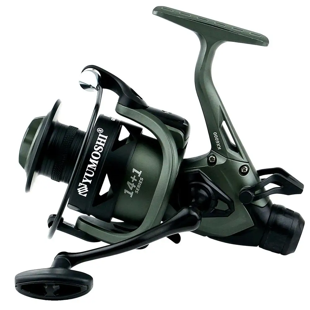 Carrete de pesca giratorio de carpa, carretes de fundición suave de doble freno, serie 3000-6000, brazo de balancín izquierdo y izquierdo intercambiable
