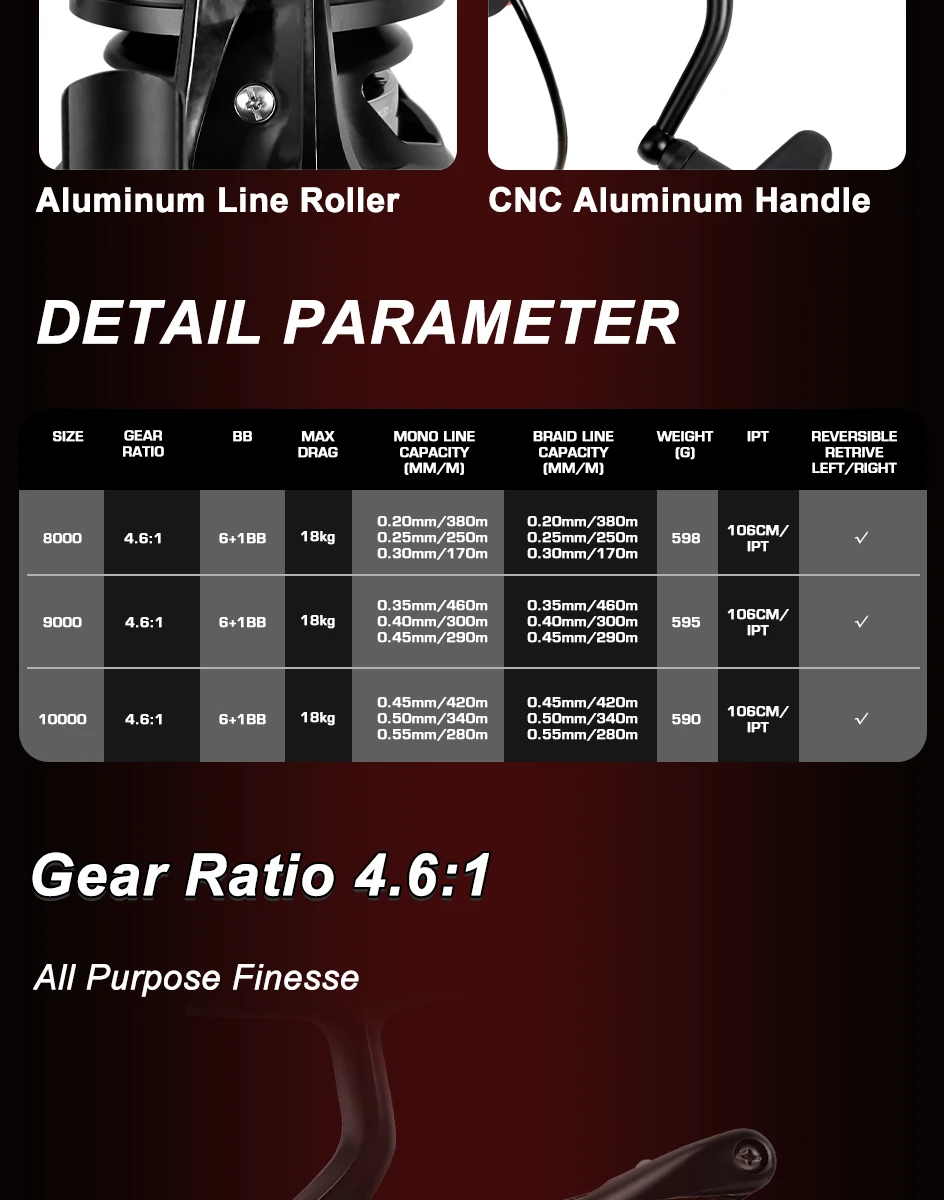 El material del carrete: carrete de aluminio