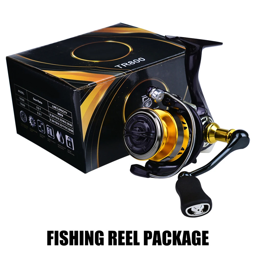 Carrete de pesca giratorio Copa de alambre de alta velocidad 7 + 1BB Rodamientos 5,2: 1 Relación de engranaje Carrete de pesca con 8KG Fuerza de frenado TR800 para pesca