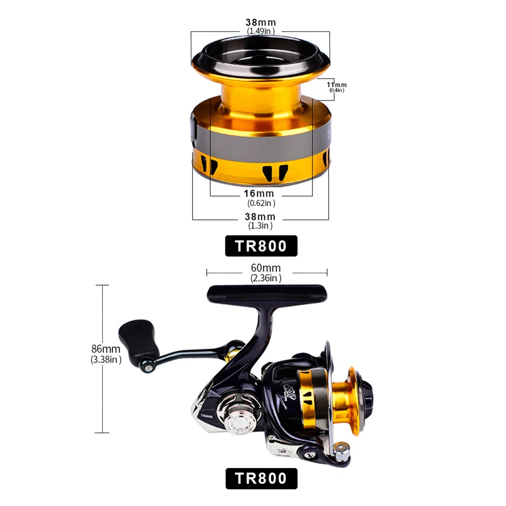 Agarre cómodo: el mango TPR800 proporciona un agarre cómodo, reduciendo la fatiga durante largas sesiones de pesca y permitiendo un control preciso de su línea de pesca.