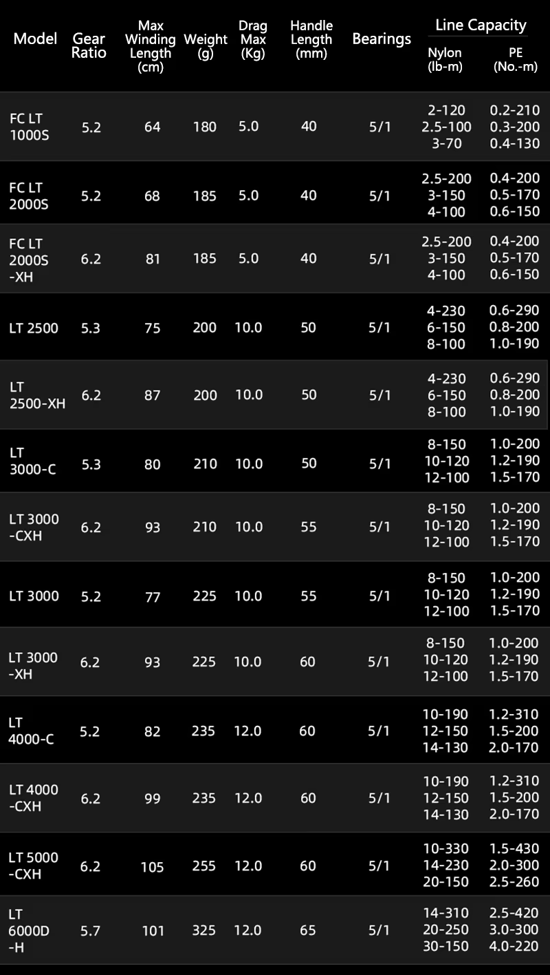 Air Bail, Twistbuster II, MagSeal, Air Rotor, un carrete de aluminio ultraligero con ABS Long Cast, un retenedor de línea rediseñado, perillas en forma de I de alto agarre y un arrastre ATD de gran tamaño brindan un diseño y mejoras de rendimiento inigualables, mientras que el corazón del carrete, el nuevo Tough Digigear de LT ofrece refinamiento, fuerza y potencia inigualables.