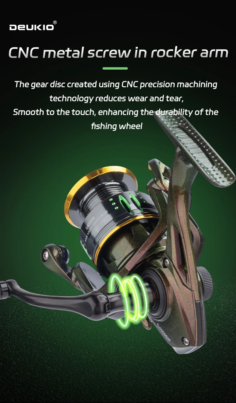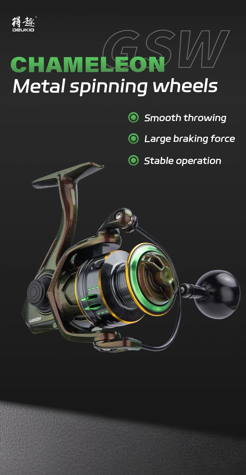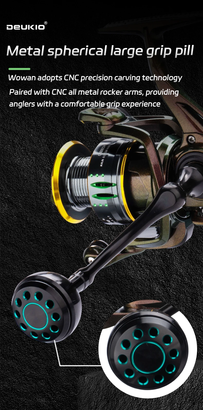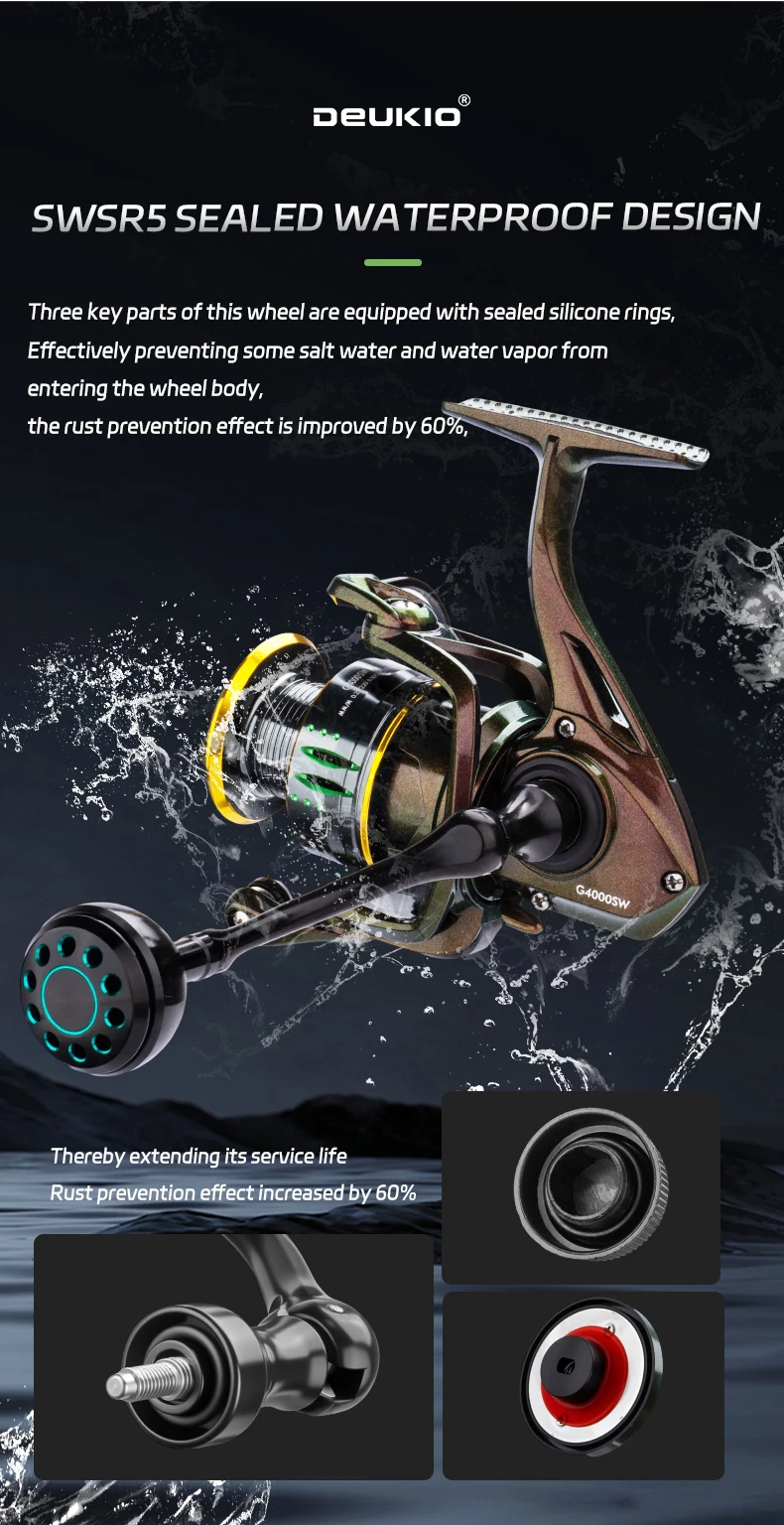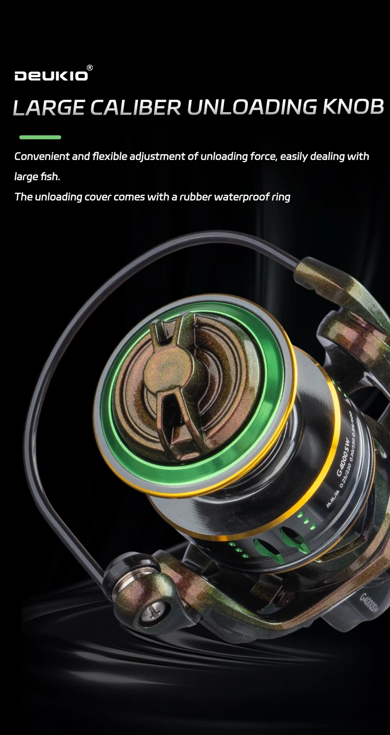 DEUKIO carrete de pesca giratorio serie 2000-7000 agua salada 5.0: 1 relación de engranaje 33lb arrastre perilla de Metal carrete de pesca giratorio