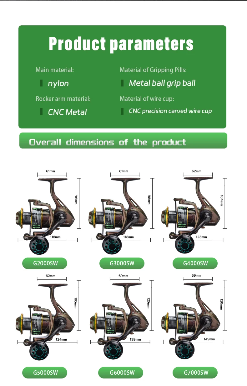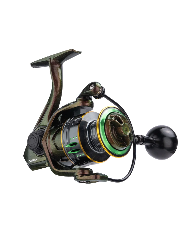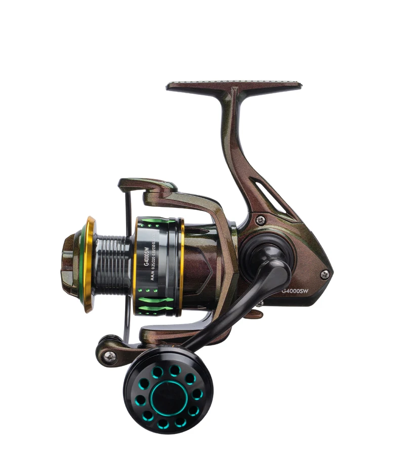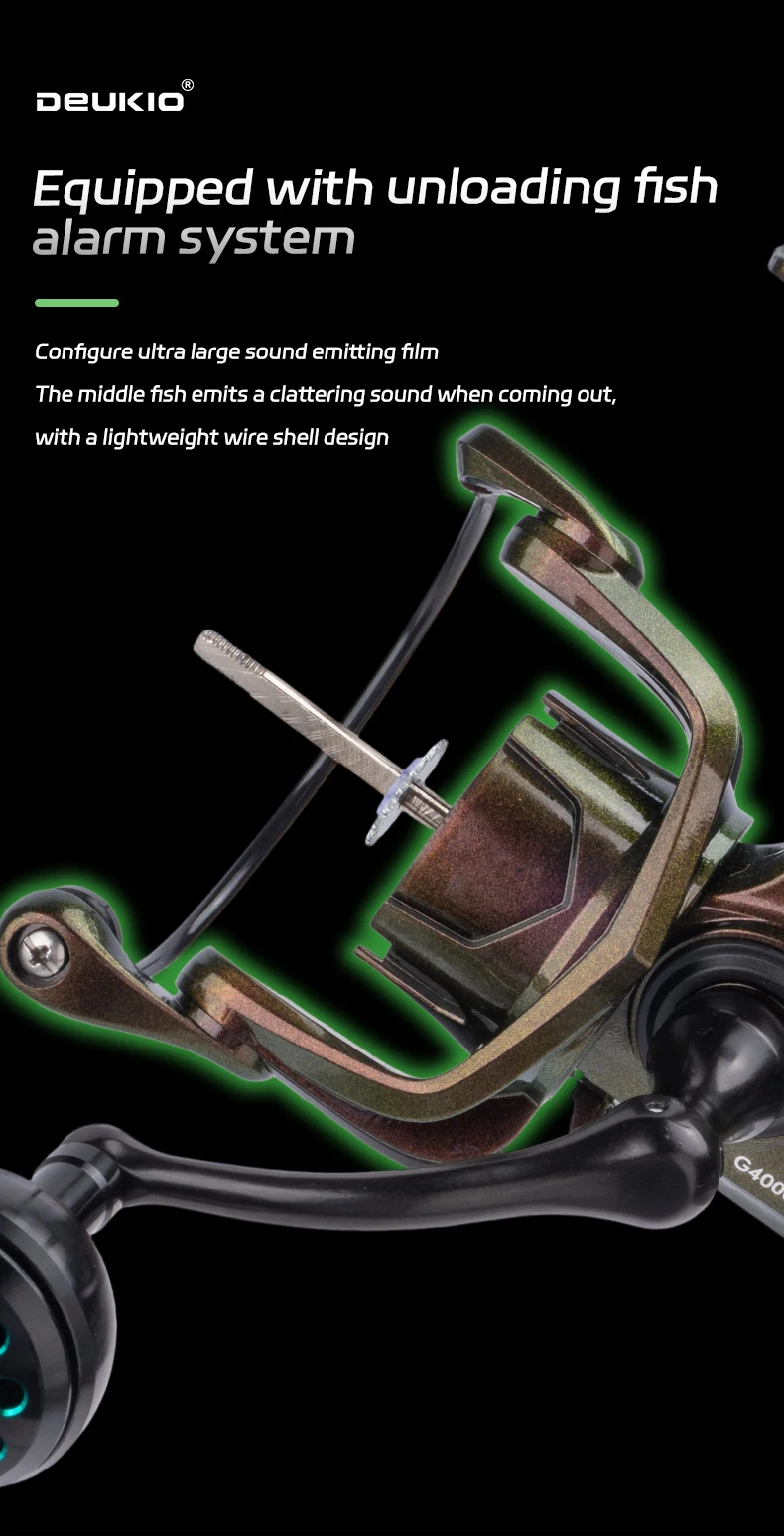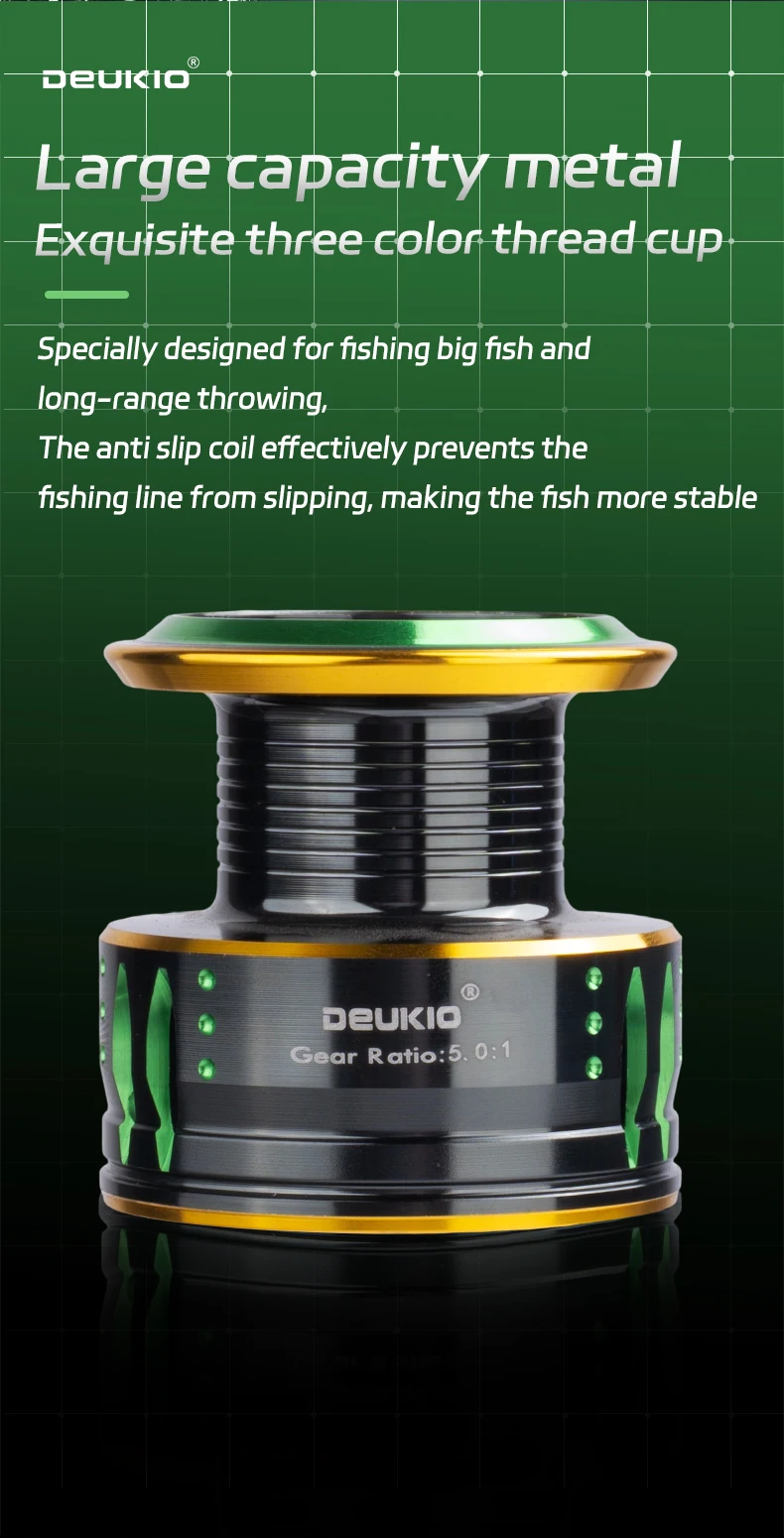 DEUKIO carrete de pesca giratorio serie 2000-7000 agua salada 5.0: 1 relación de engranaje 33lb arrastre perilla de Metal carrete de pesca giratorio