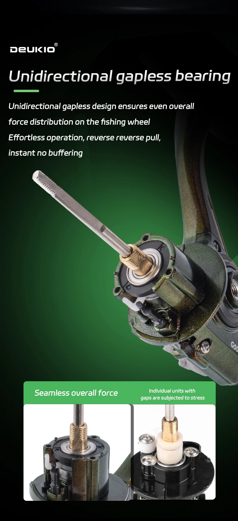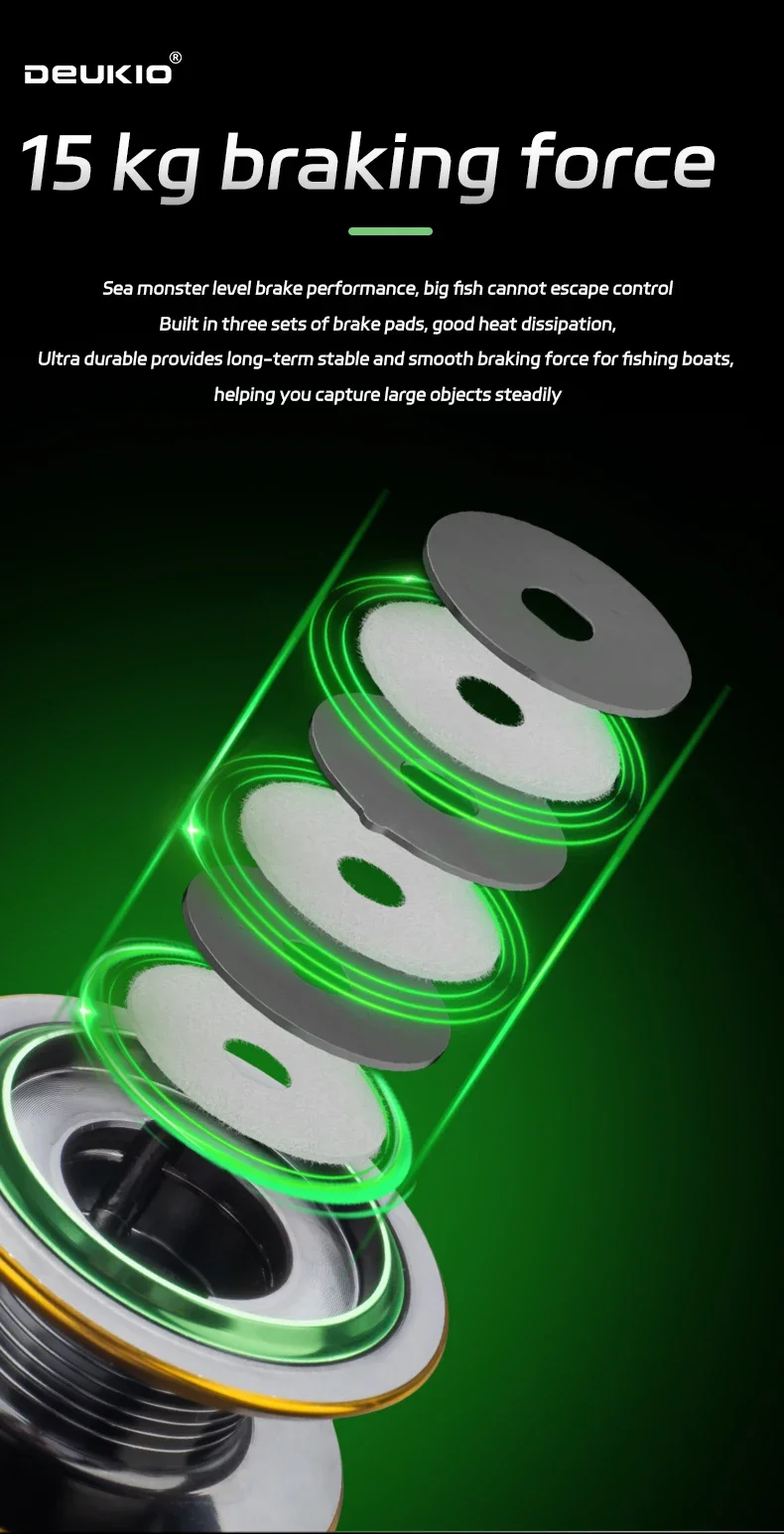 2: Con una fuerza de pesca máxima de 15 kg, se utilizan pastillas de freno de fieltro de lana de alta calidad para brindar un fuerte soporte para la pesca de largo alcance.La salida de la fuerza de frenado es suave y estable, lo que permite golpear objetos grandes con fuerza y una pesca eficiente.
