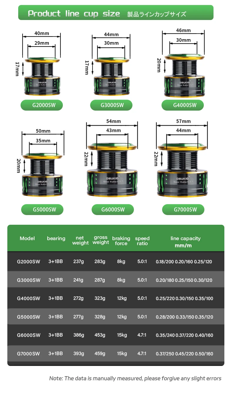 DEUKIO carrete de pesca giratorio serie 2000-7000 agua salada 5.0: 1 relación de engranaje 33lb arrastre perilla de Metal carrete de pesca giratorio