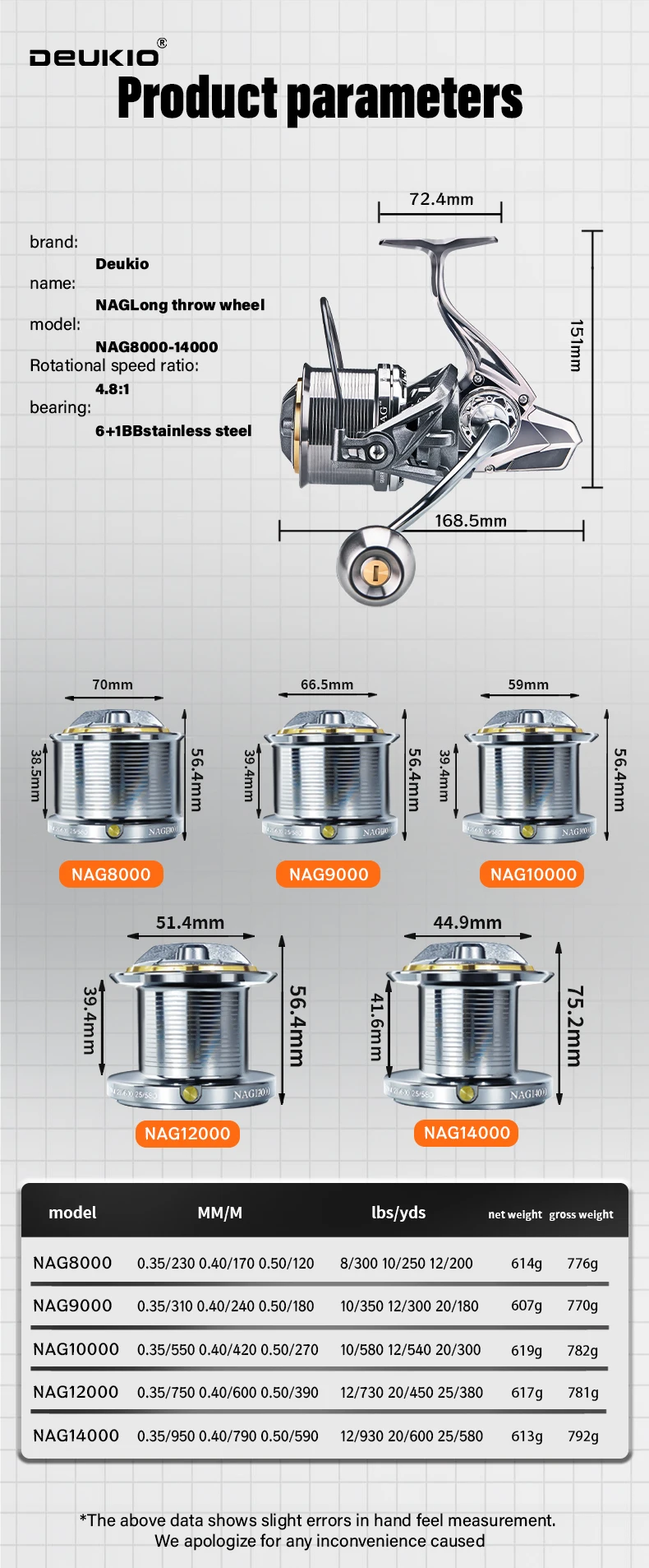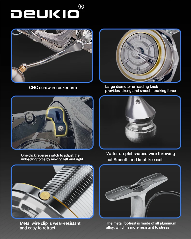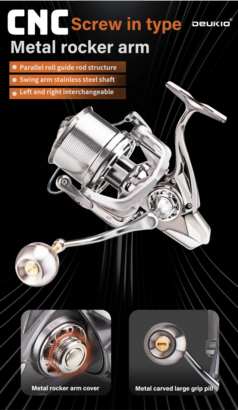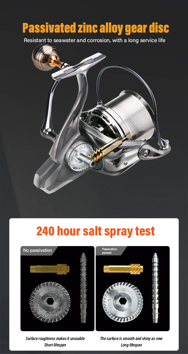 1.Antiagua de mar a gran escala, apuntamiento de peces de largo alcance, capaz de lanzar hasta 100 metros, asiento de rueda totalmente metálico; Pastilla con agarre de metal.