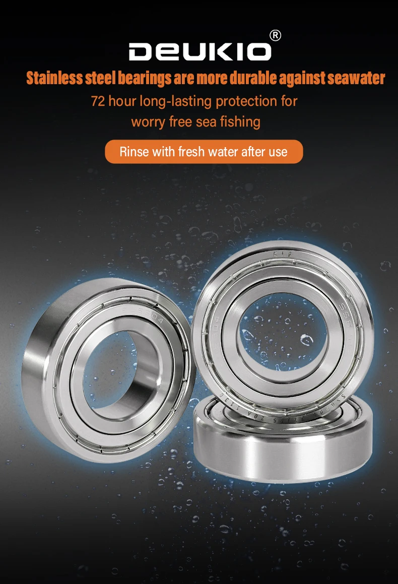 4.Los rodamientos de acero inoxidable son más duraderos contra el agua de mar y brindan una protección duradera de 72 horas para una pesca en el mar sin preocupaciones.Después de su uso, enjuague con agua dulce para limpiar.