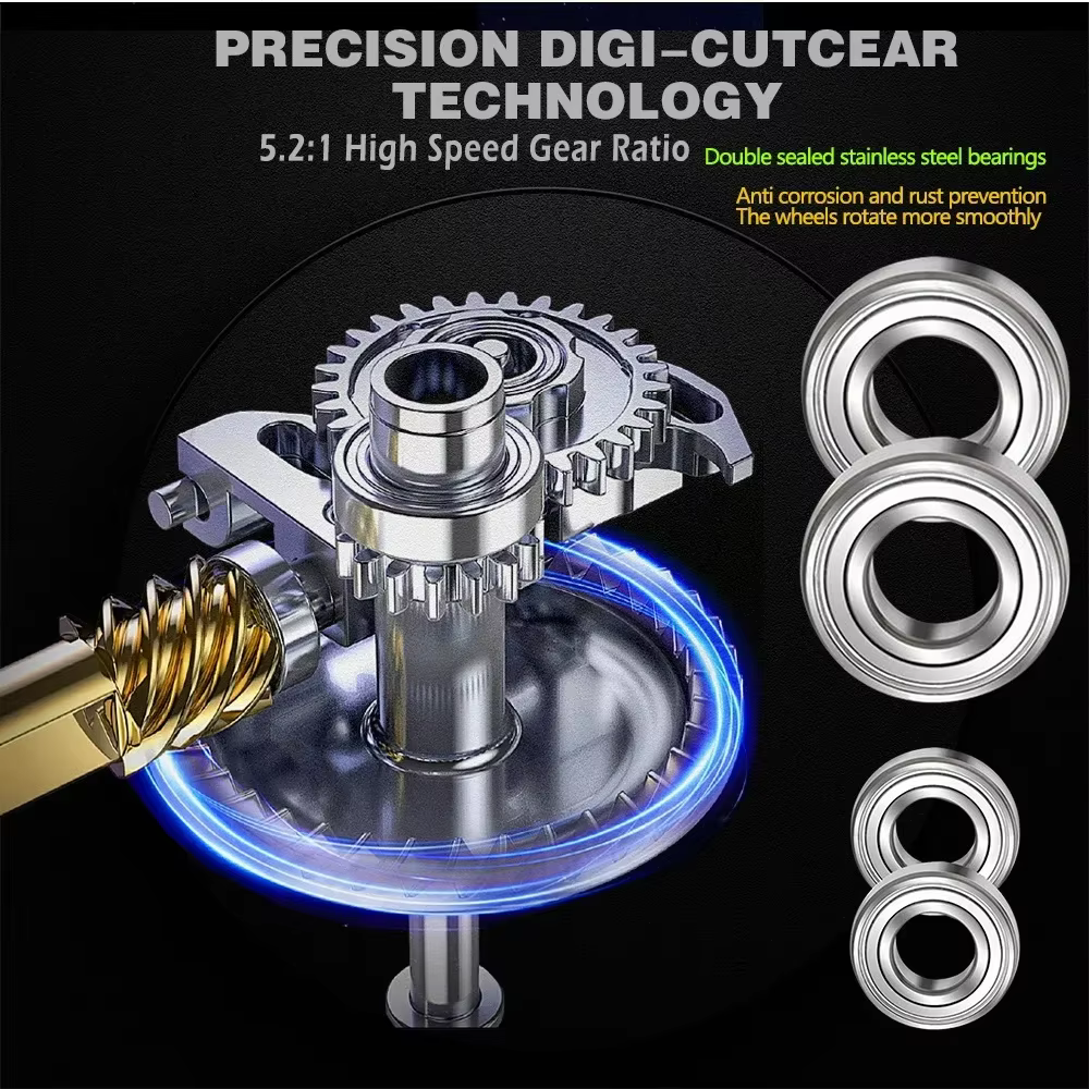 Si pesca una o dos veces y sus ruedas se oxidan y quedan inutilizables, no se preocupe. El material del rodamiento de esta rueda de pesca es un rodamiento de acero inoxidable de doble sellado, que es más suave que los rodamientos normales, impermeable y libre de óxido, y tiene una vida útil más larga.