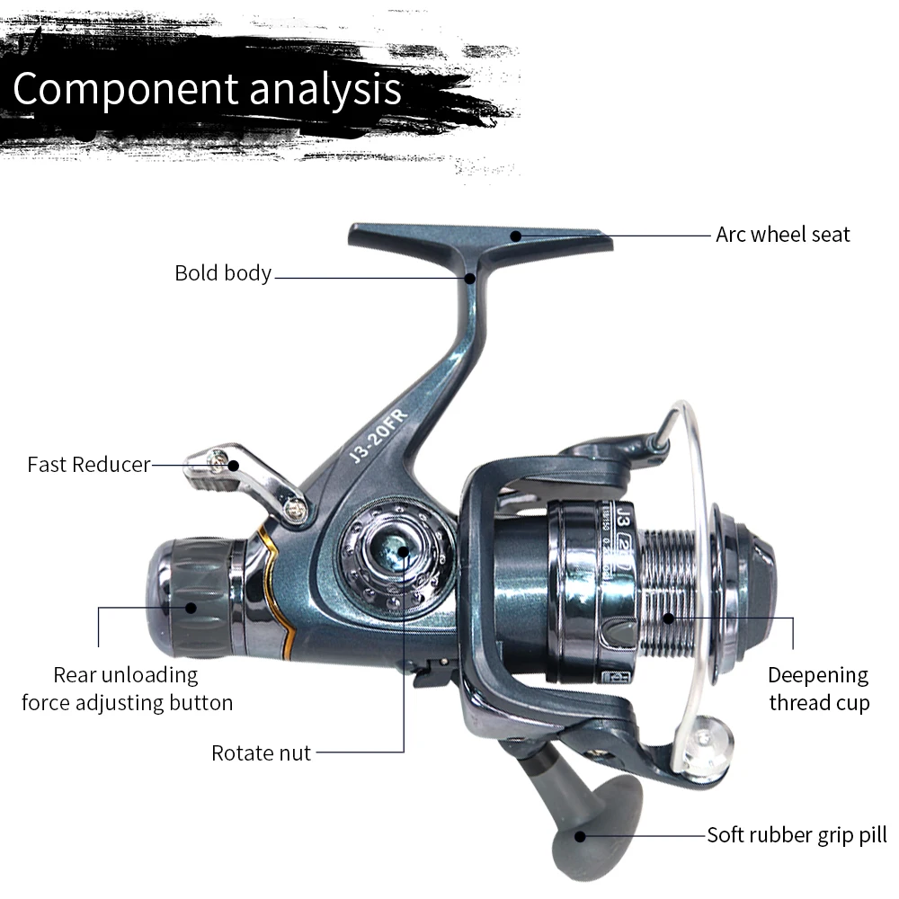 Carrete de pesca giratorio de doble freno delantero y trasero de carpa fuerte, arrastre máximo de 8KG, relación de engranaje 5,5: 1, herramientas de Pesca de Mar suaves para agua salada